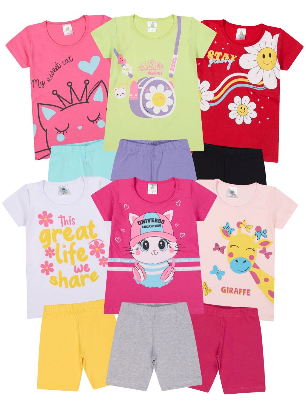 Kit Sortido 8 Peças de Roupas Bebe Menina Conjunto Ciclista Tamanho 1 ao 10