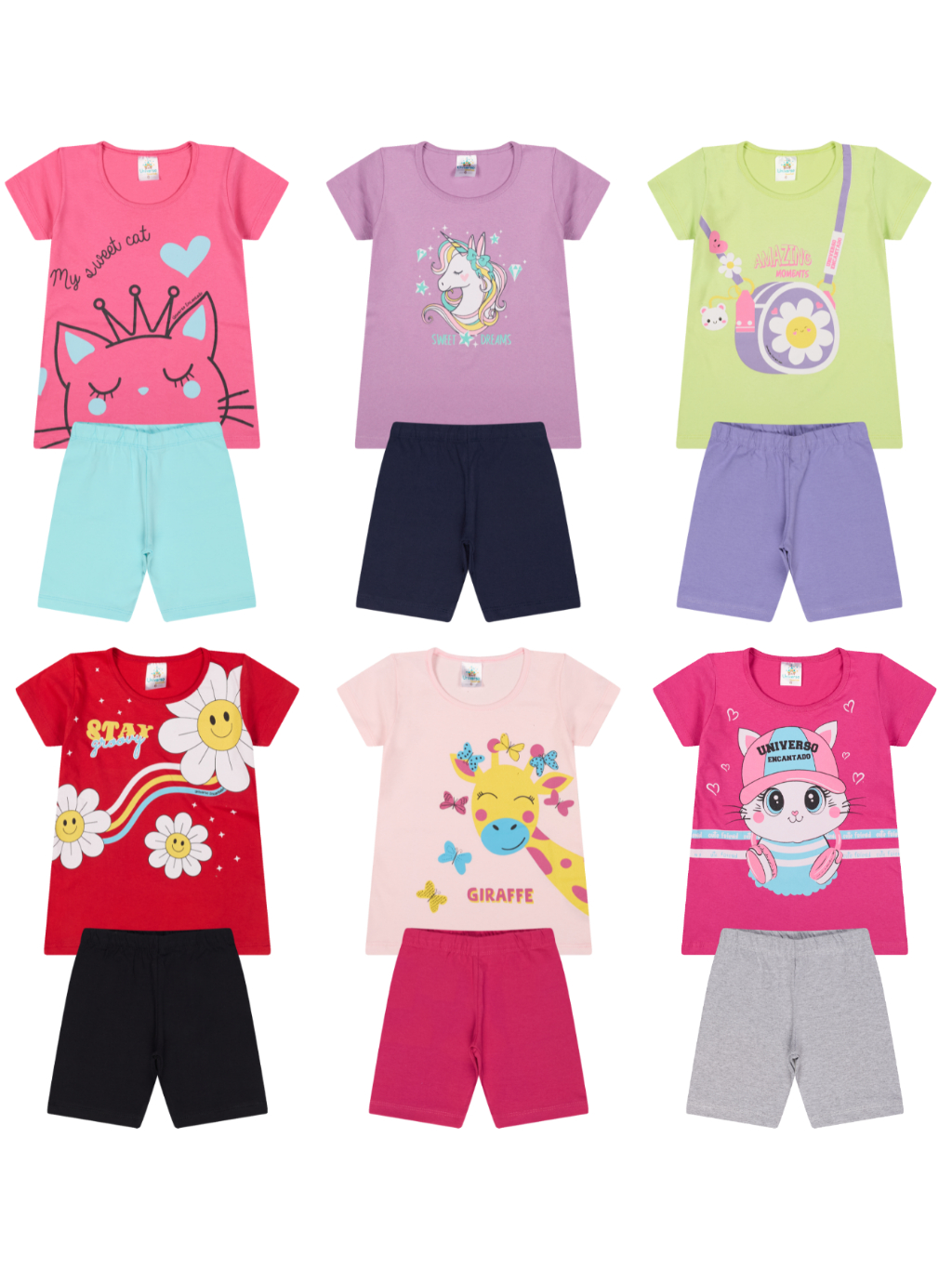 Kit Sortido 6 Peças de Roupas Bebe Menina Conjunto Ciclista Tamanho 1 ao 10