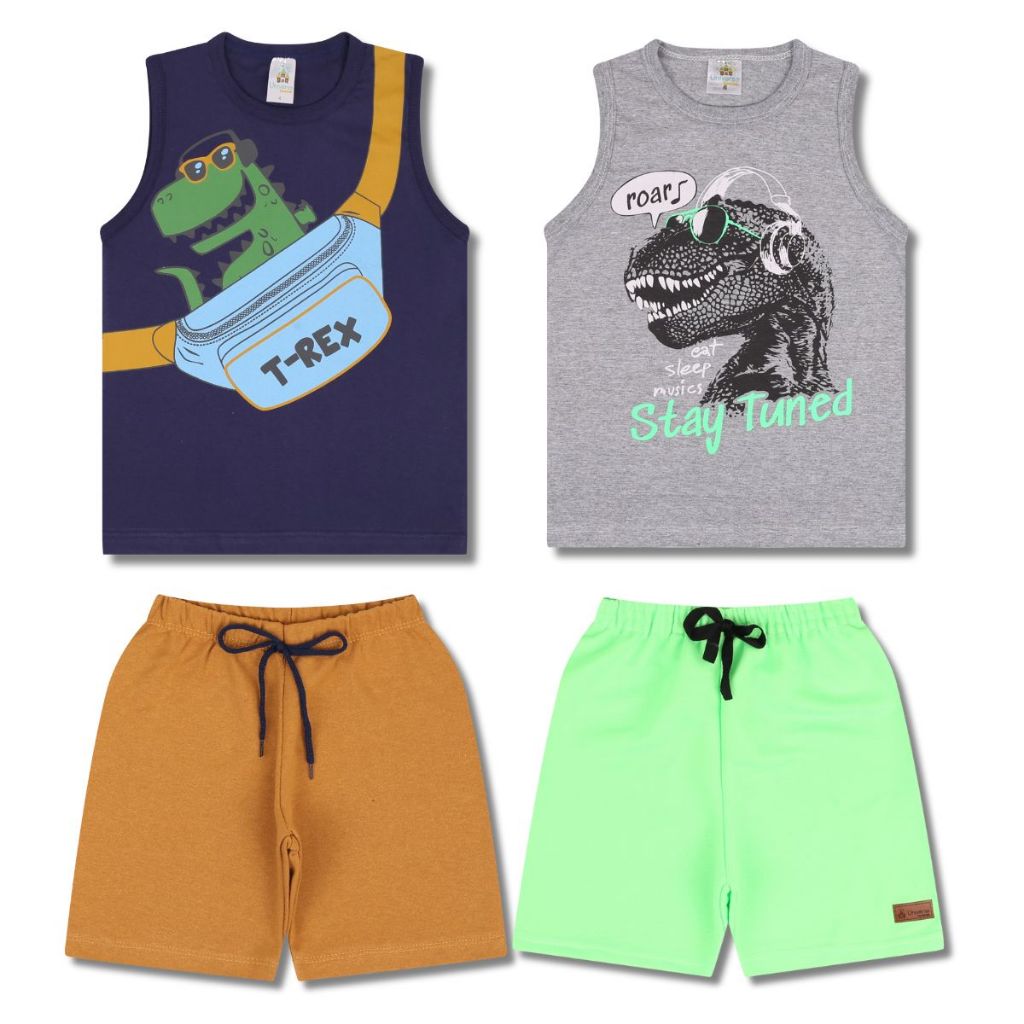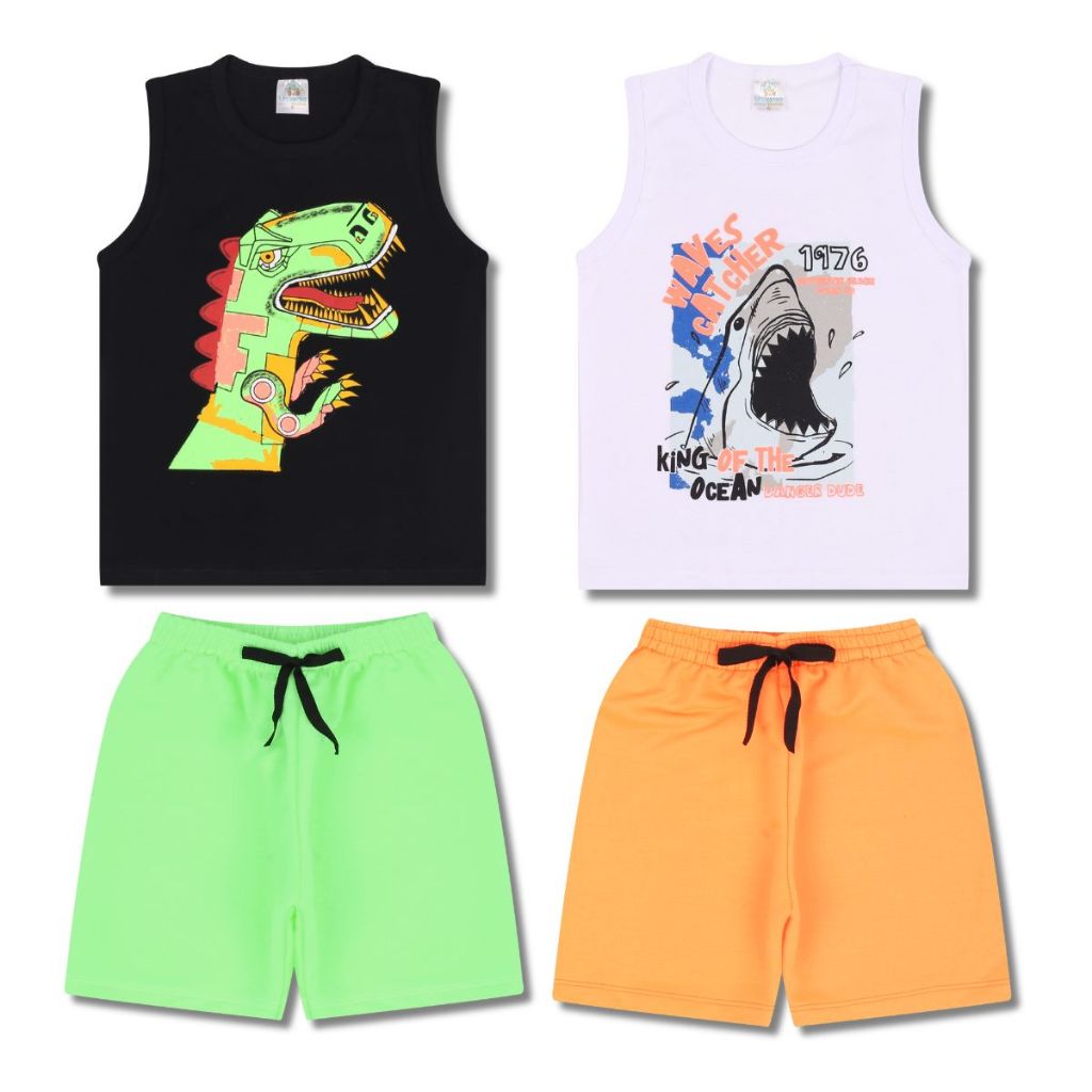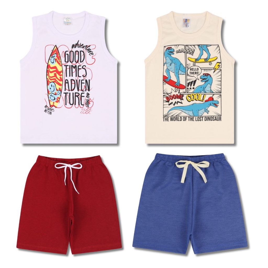 Kit 6 Peças de Conjunto Regata para Meninos - 3 Regatas e 3 Bermudas, Tamanhos Disponíveis de 1 a 10
