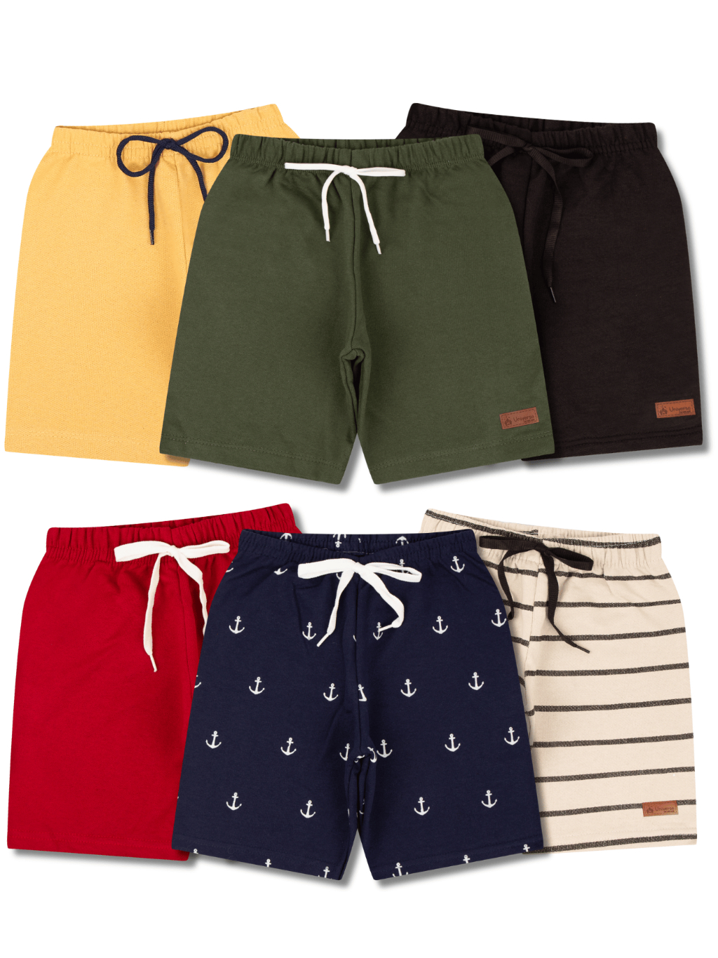 Kit de 6, 4, 1 Bermudas Bebe Menino Moletinho Algodão Shorts Infantil Masculino Casual Opções Lisa e Estampadas de Verão