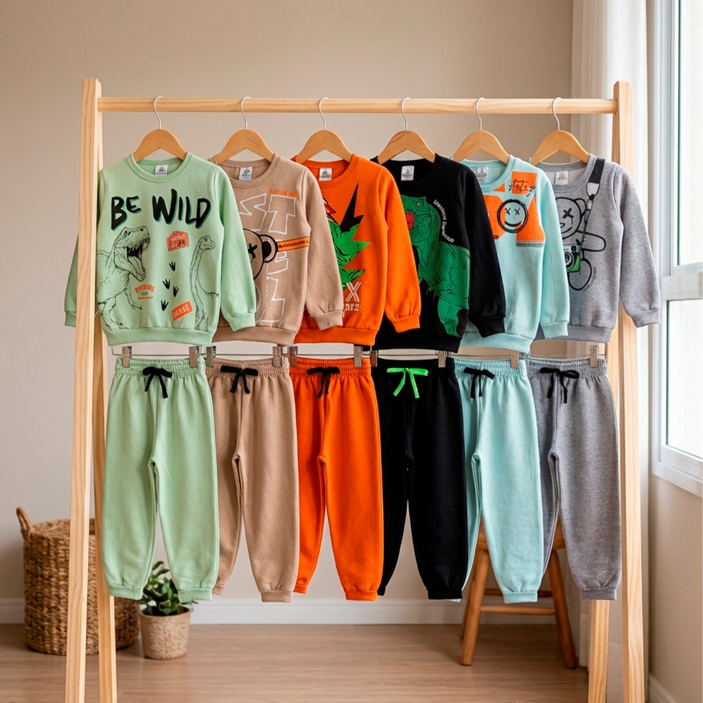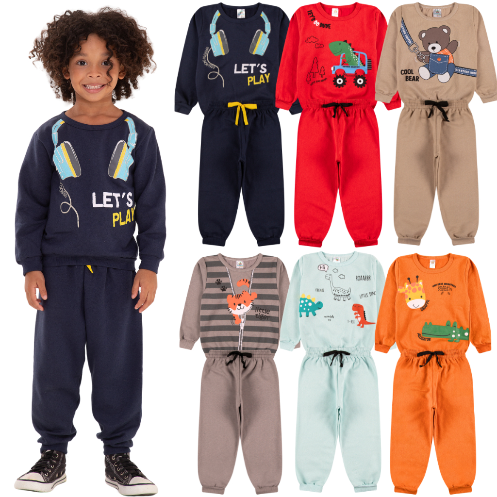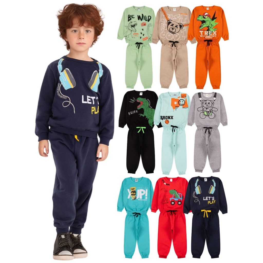 Kit Sortido 4 Peças de Roupas Masculino Infantil Inverno – 2 blusas casacos + 2 calças de 1 ao 10 – Kit 2 Conjuntos