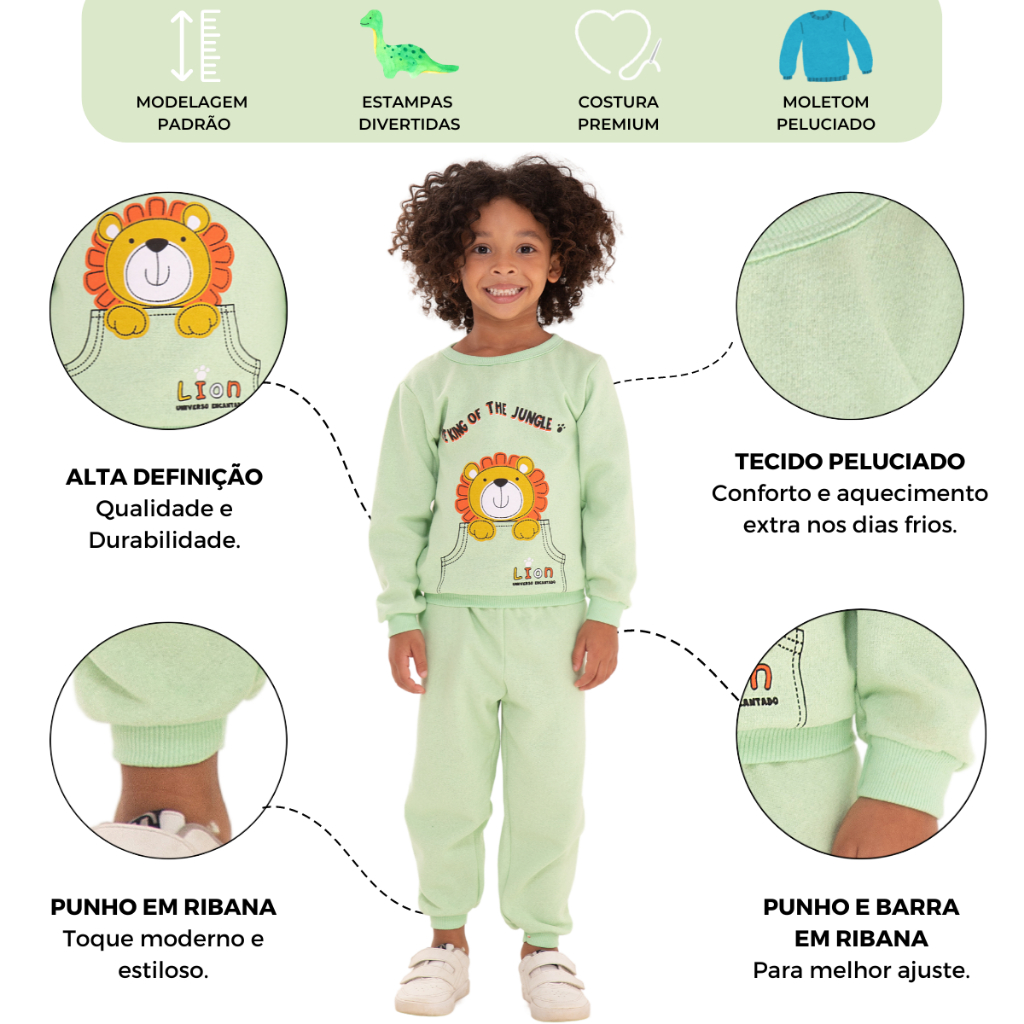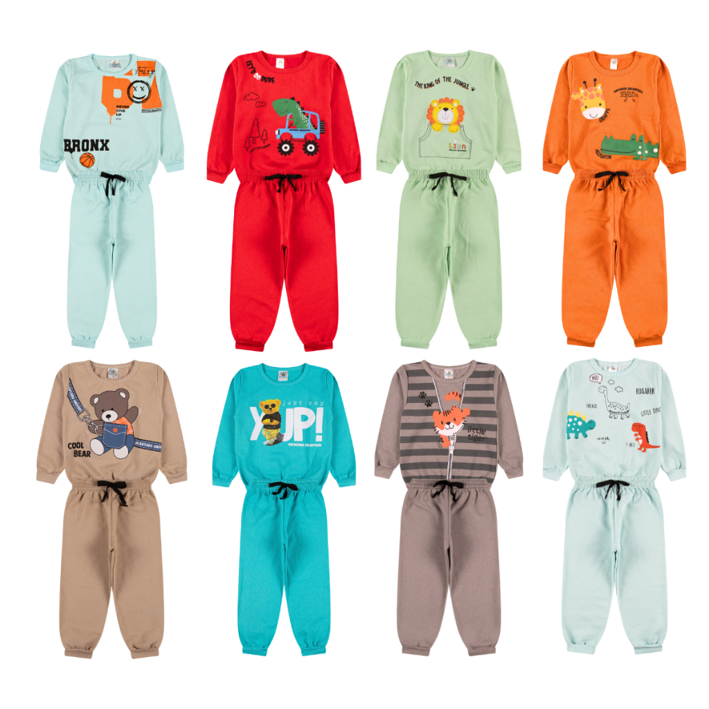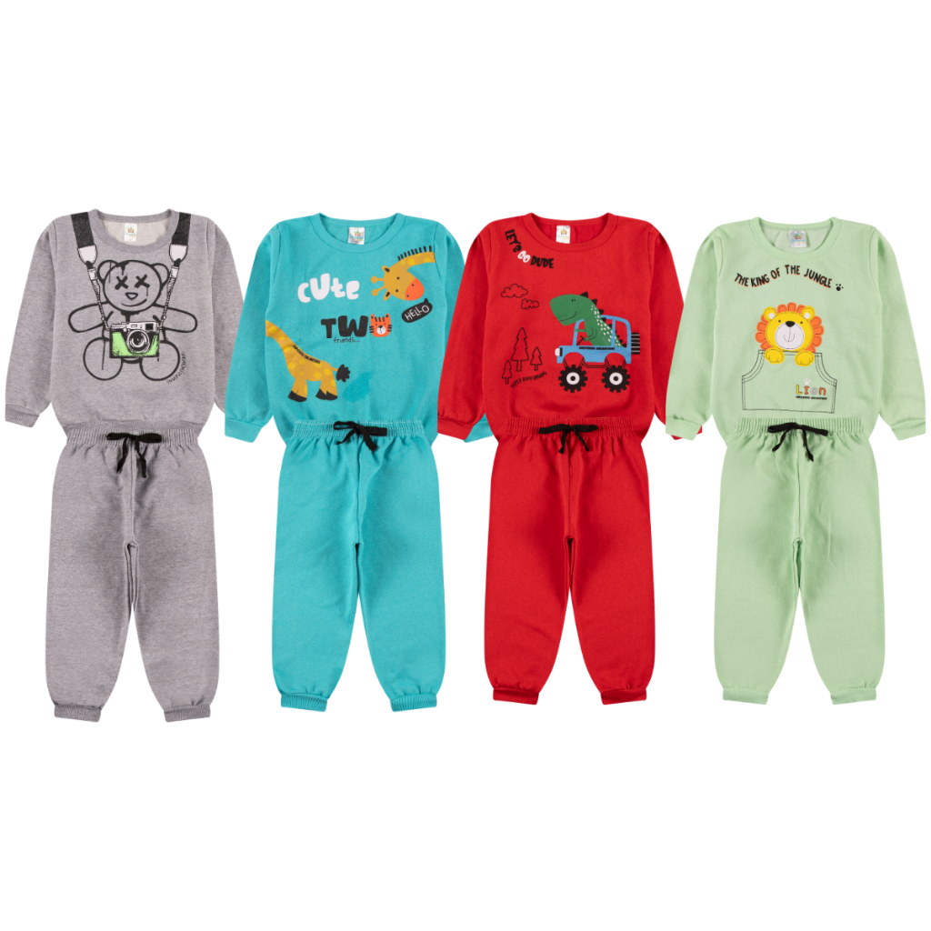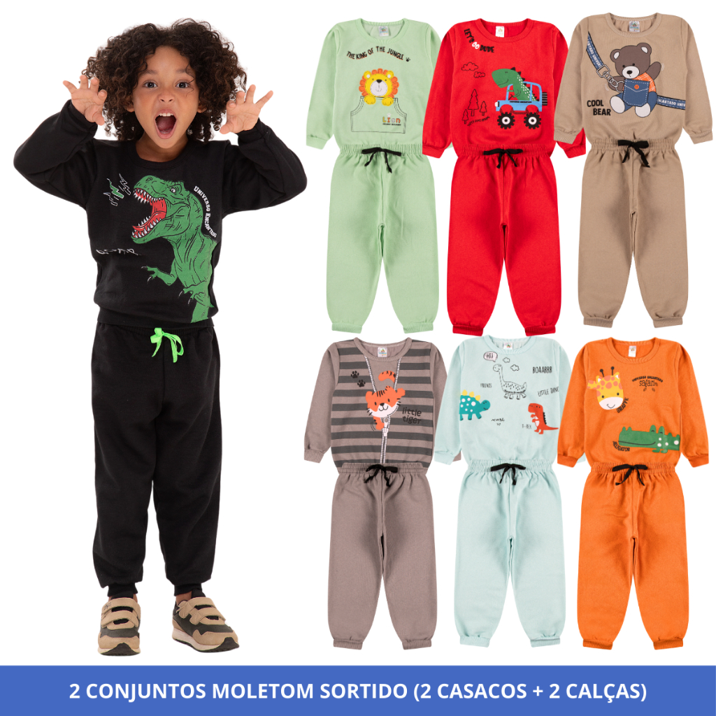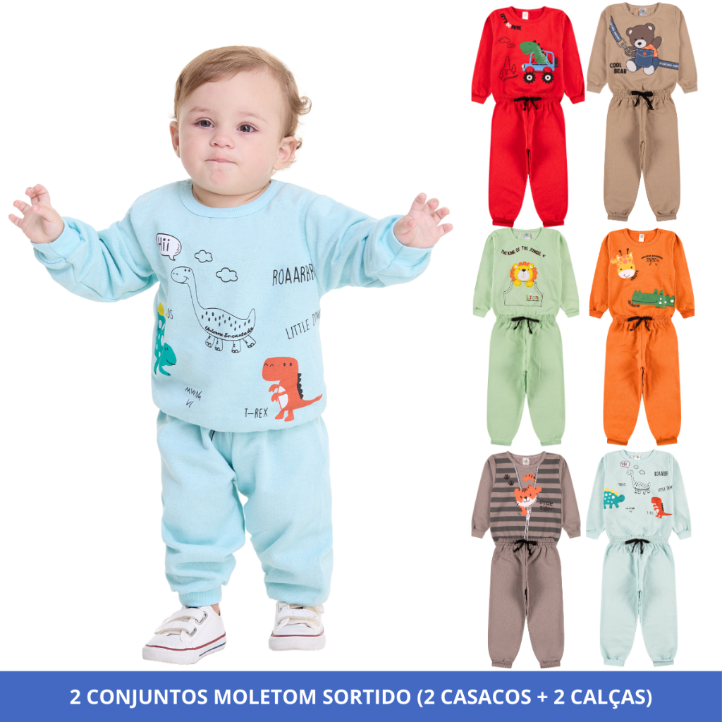 Kit Sortido 4 Peças de Roupas Infantil Bebê Menino (2 Casacos + 2 Calças) Kit 2 Conjuntos Moletom