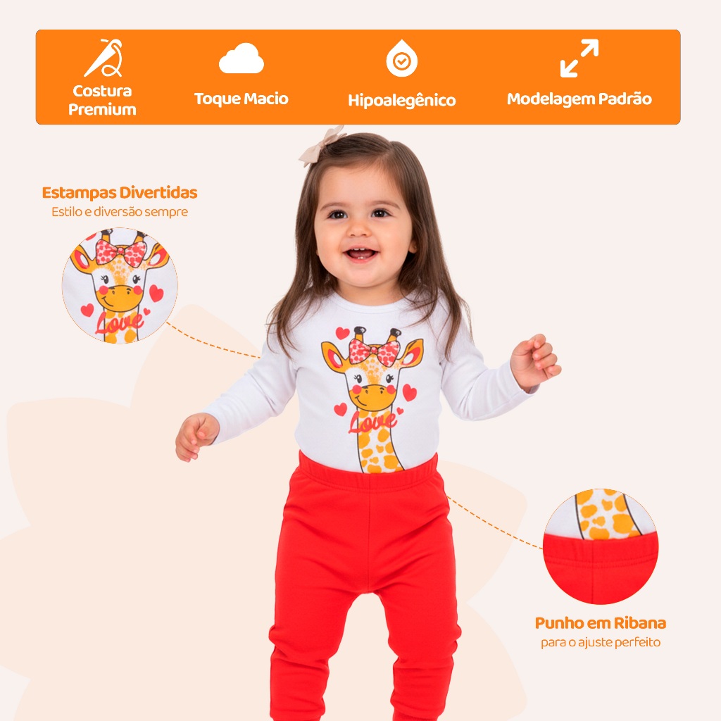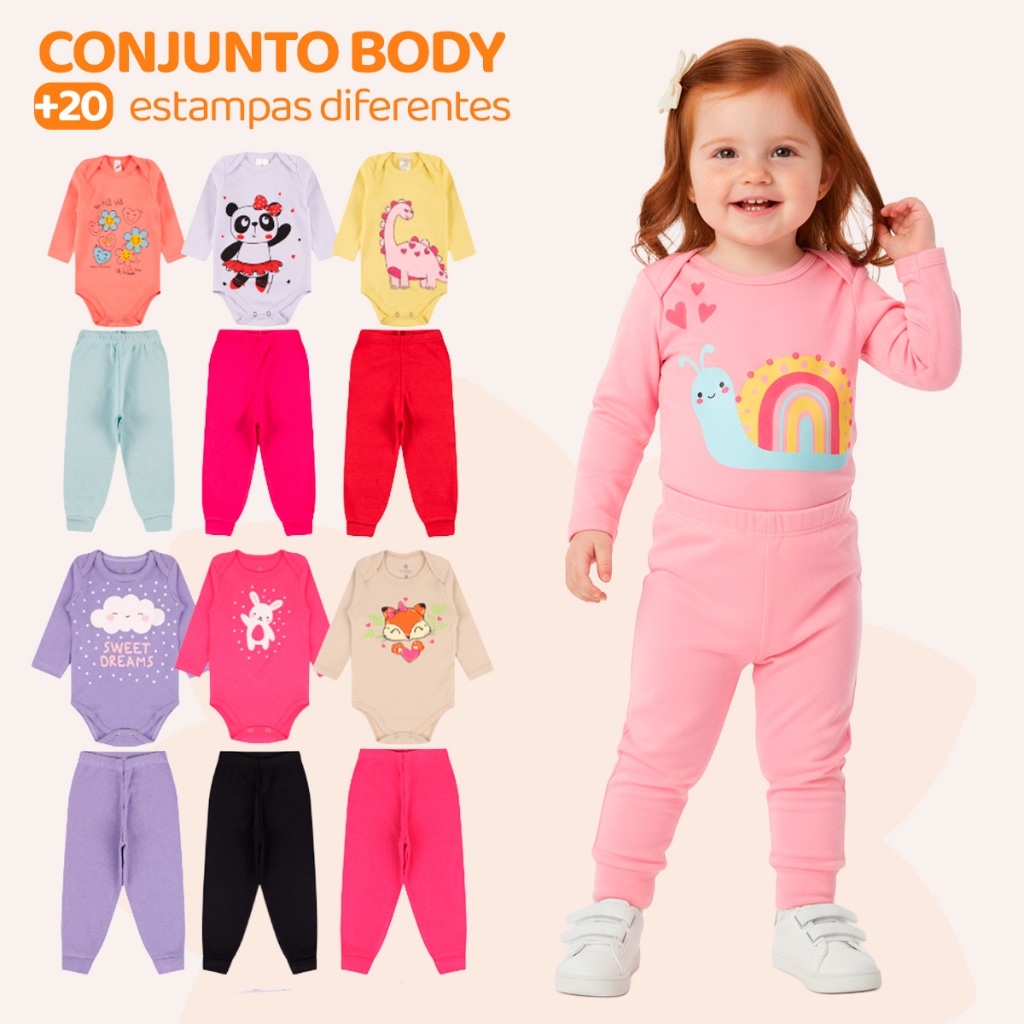 Kit 4 ou 8 Peças de Roupas para Bebê Menina (Body Longo+ Calça Mijão) Conjunto Body + Calça Roupa Infantil