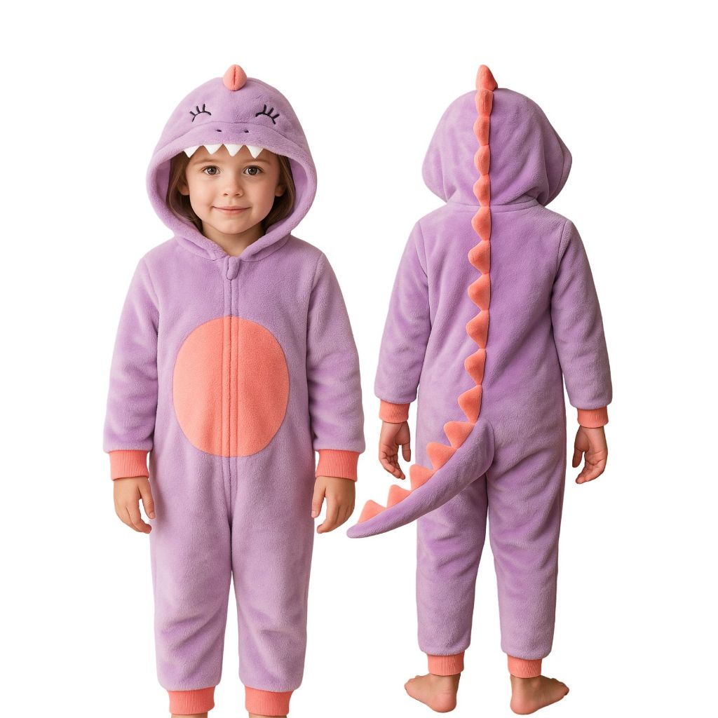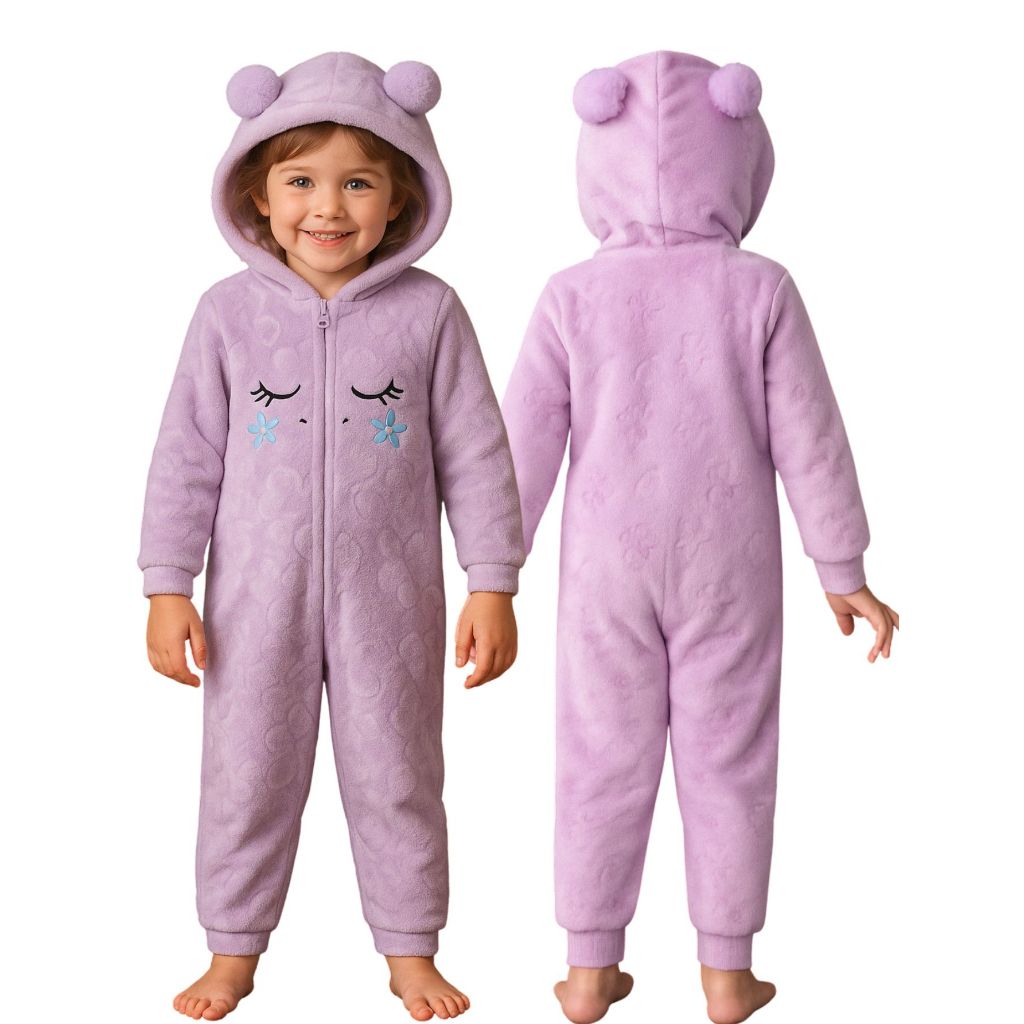 Pijama Macacão Bebê Menina em Fleece Temático Unicórnio ,Dinossauro, Panda, Urso – Super Quentinho e Confortável!