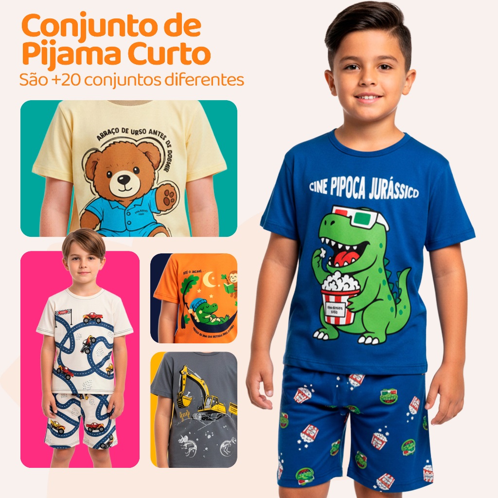 Kit Sortido 2, 6 ou 8 Peças Pijama Infantil Menino Manga Curta Masculino Pijamas Infantil para Meninos Verão Calor