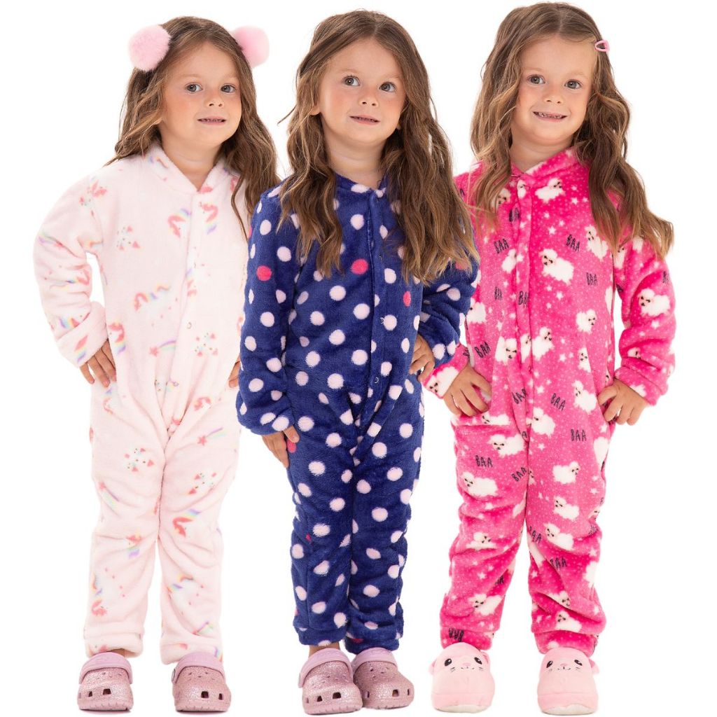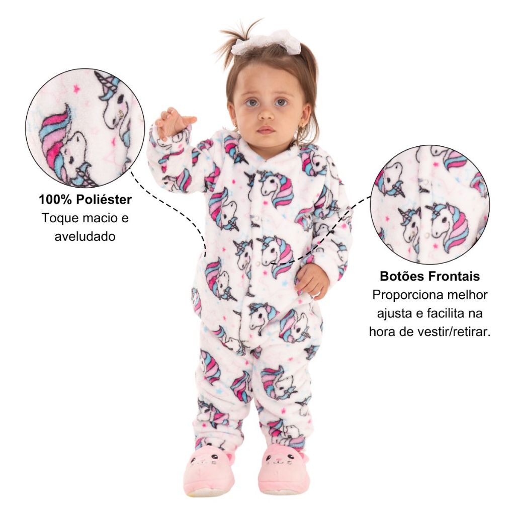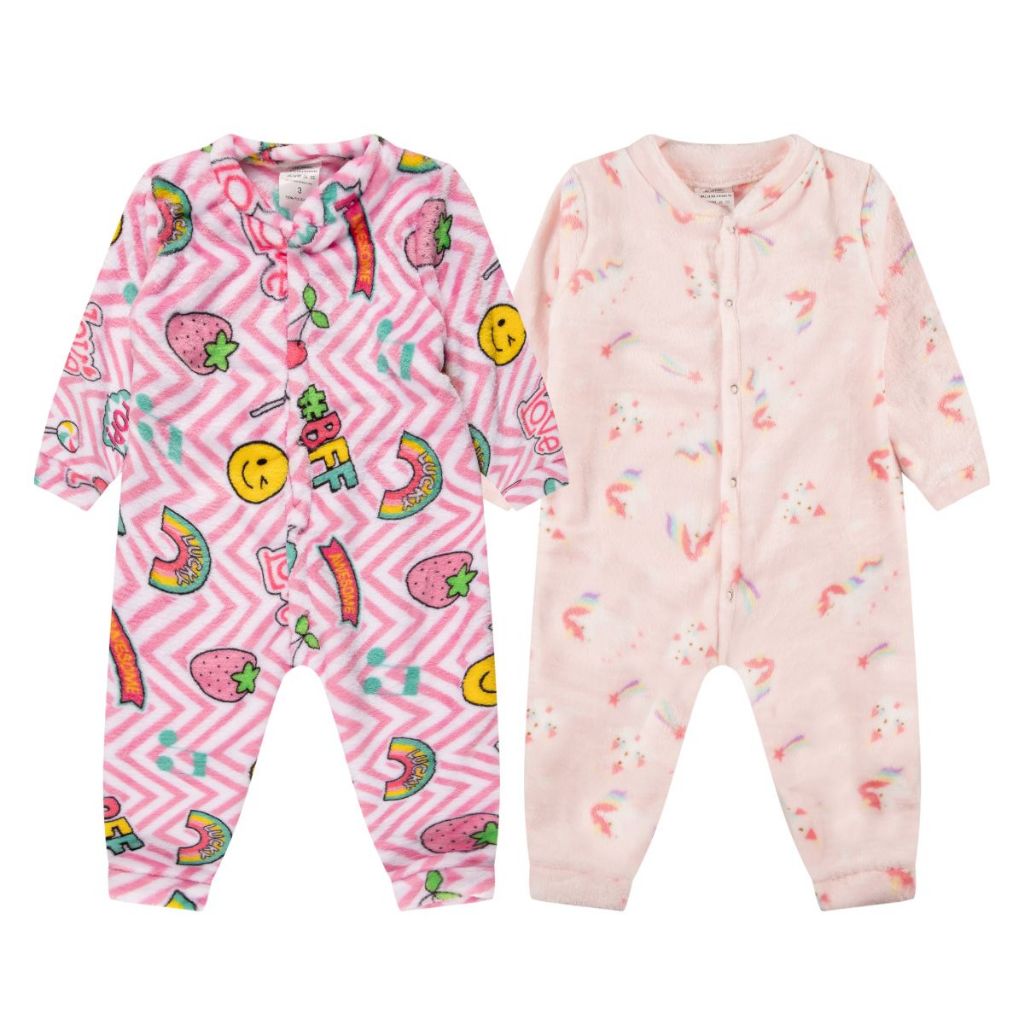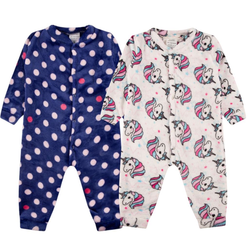 Kit 2 Macacão Bebe Menina Roupa Inverno Soft Peluciado Com Zíper Sortido