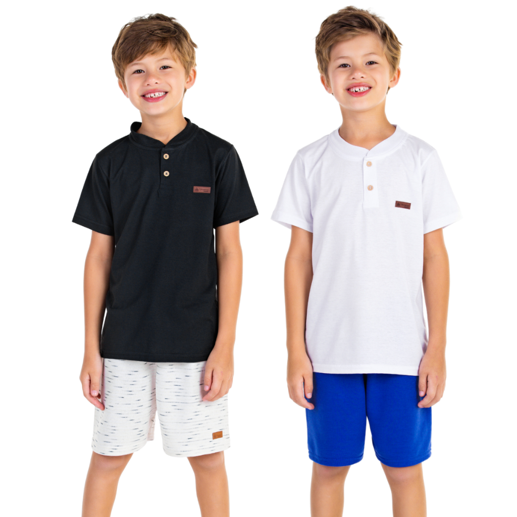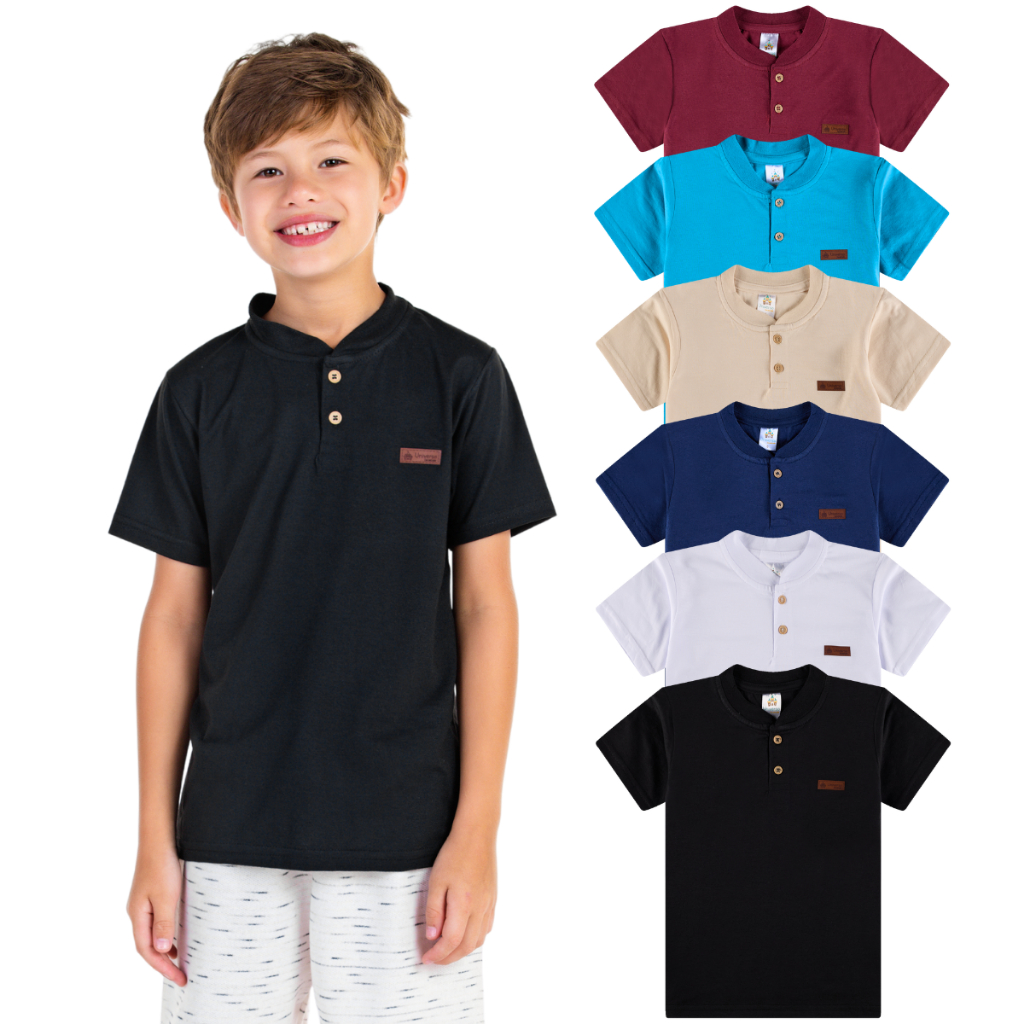 Kit Sortido 3 Camisetas Gola Padre Henley Menino - Elegância e Conforto