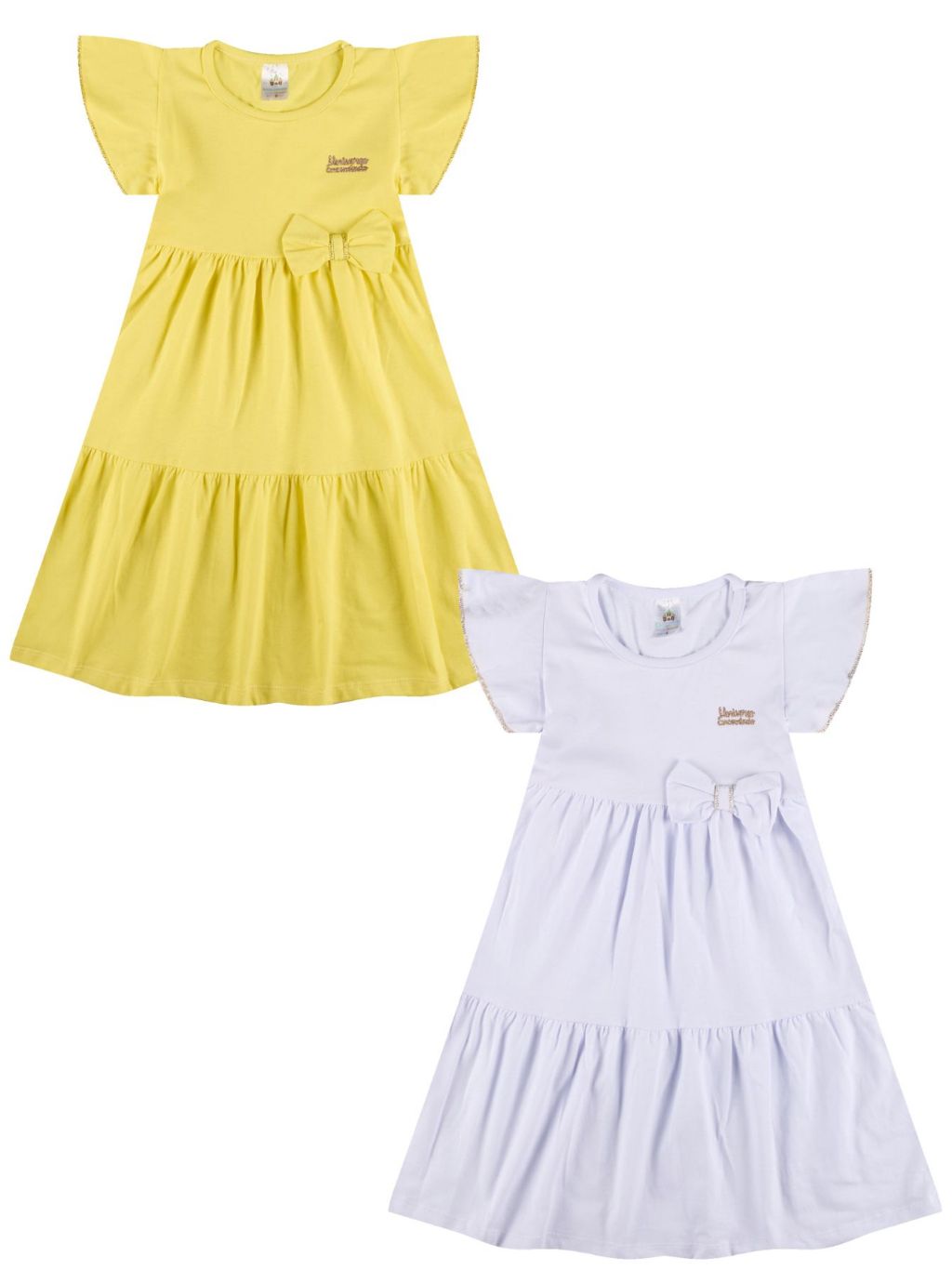 Kit 3 Vestido Infantil Menina Verão Três Marias 100% Algodão Com Laço - Kit Sortido Tamanhos 1 ao 12