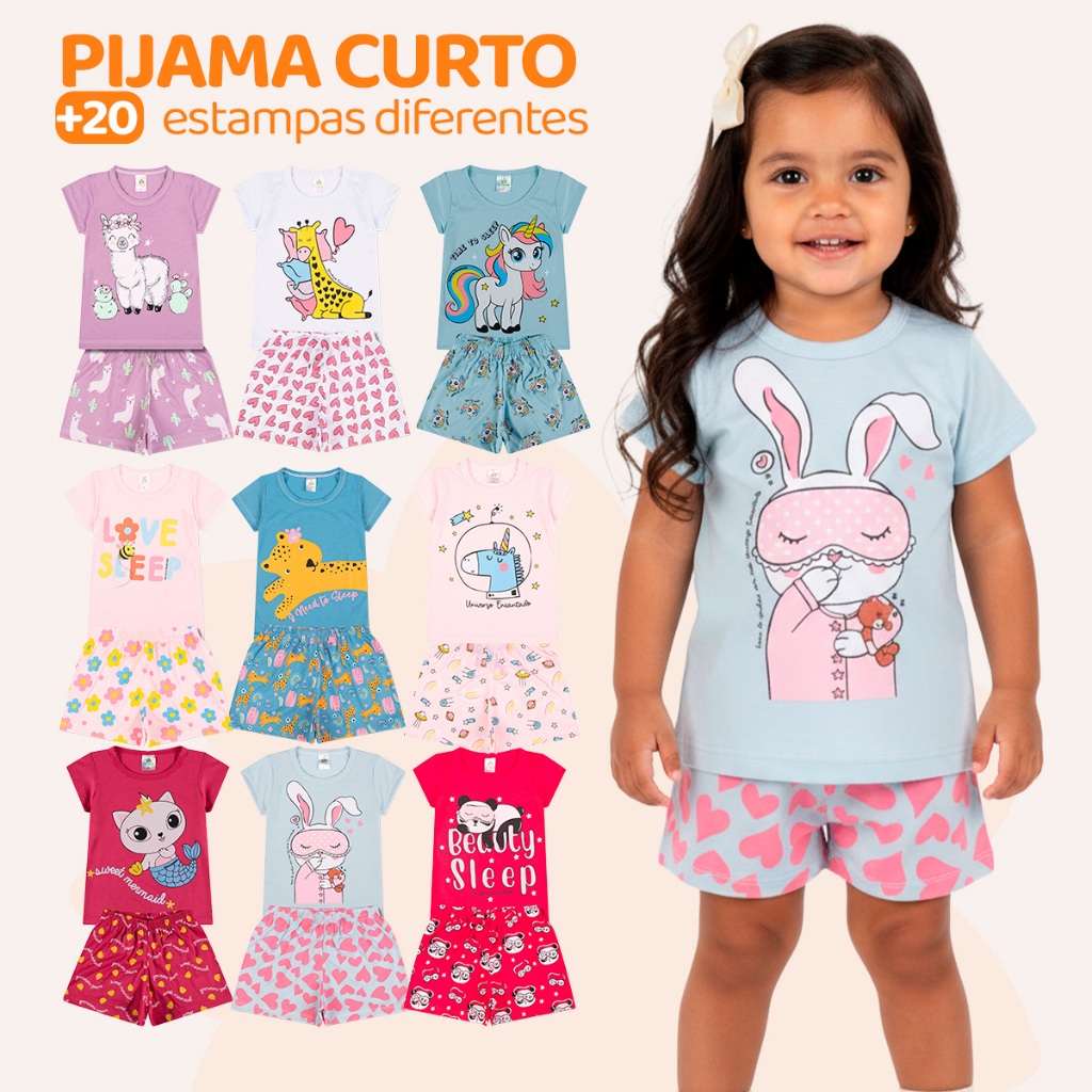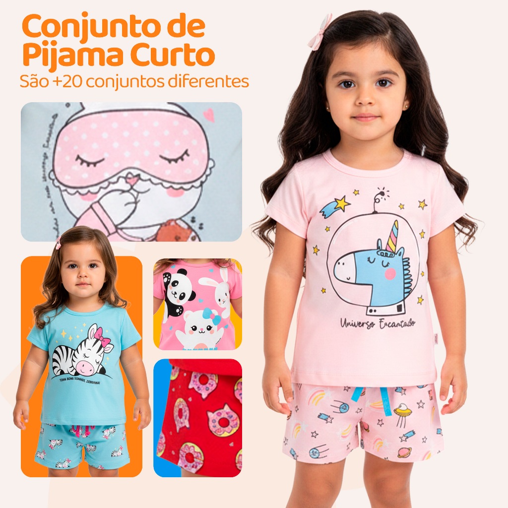 Kit 6 Peças de Pijamas Curto Infantis para Bebê Meninas Confortáveis e Cheios de Estilo.