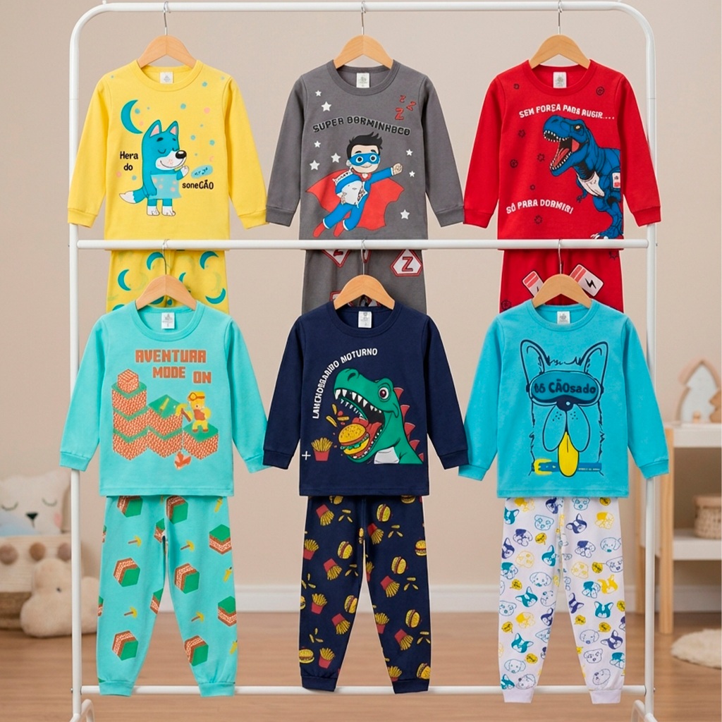 Kit Sortido 4 Peças Pijama Infantil Menino Manga Comprida Tamanho 1 ao 10