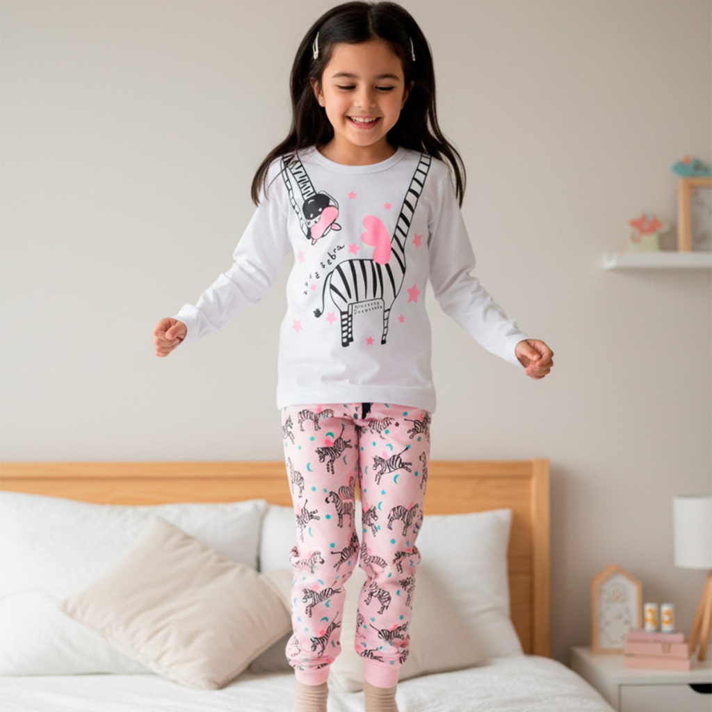 Kit Sortido 6 Peças Pijama Infantil Menina Manga Comprida Longa Pijama Inverno Frio Confortável e Quentinho 100% Algodão
