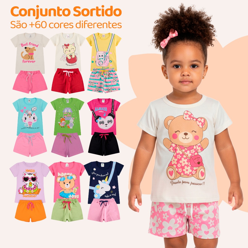 Kit Sortido 6 ou 10 Peças de Roupas Infantil Menina Feminino Conjunto de Verão Em Algodão Blogueirinha