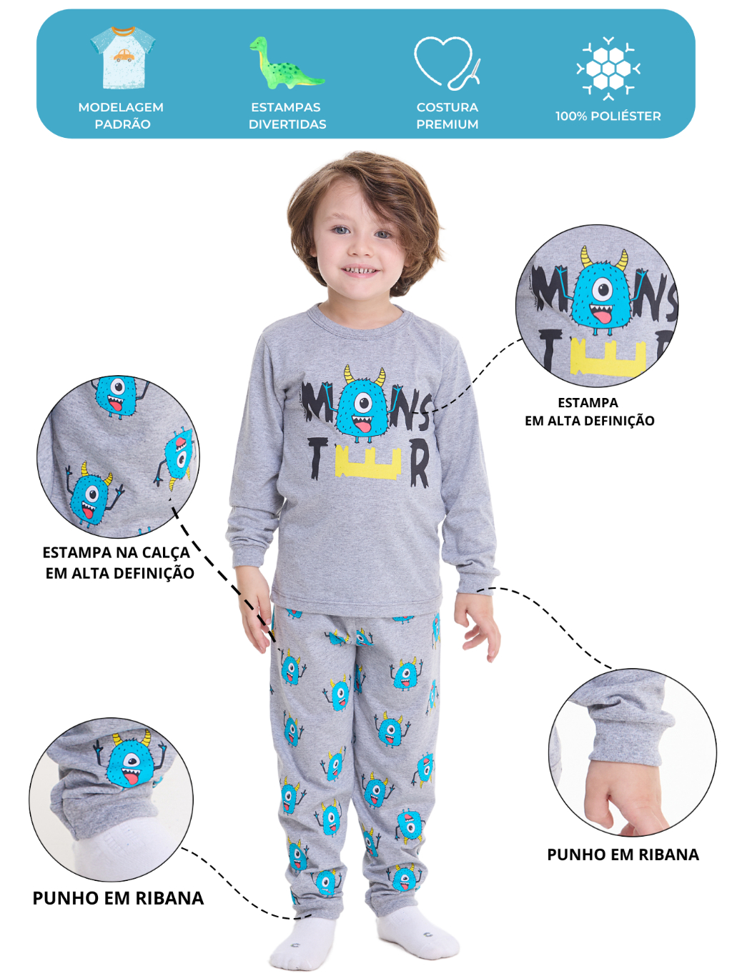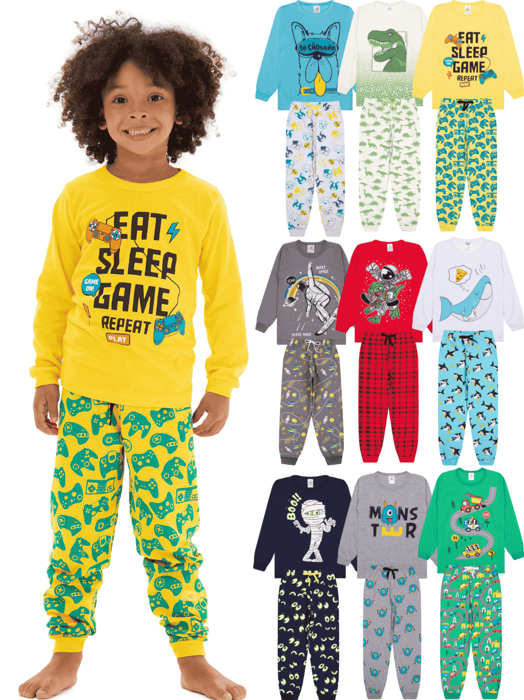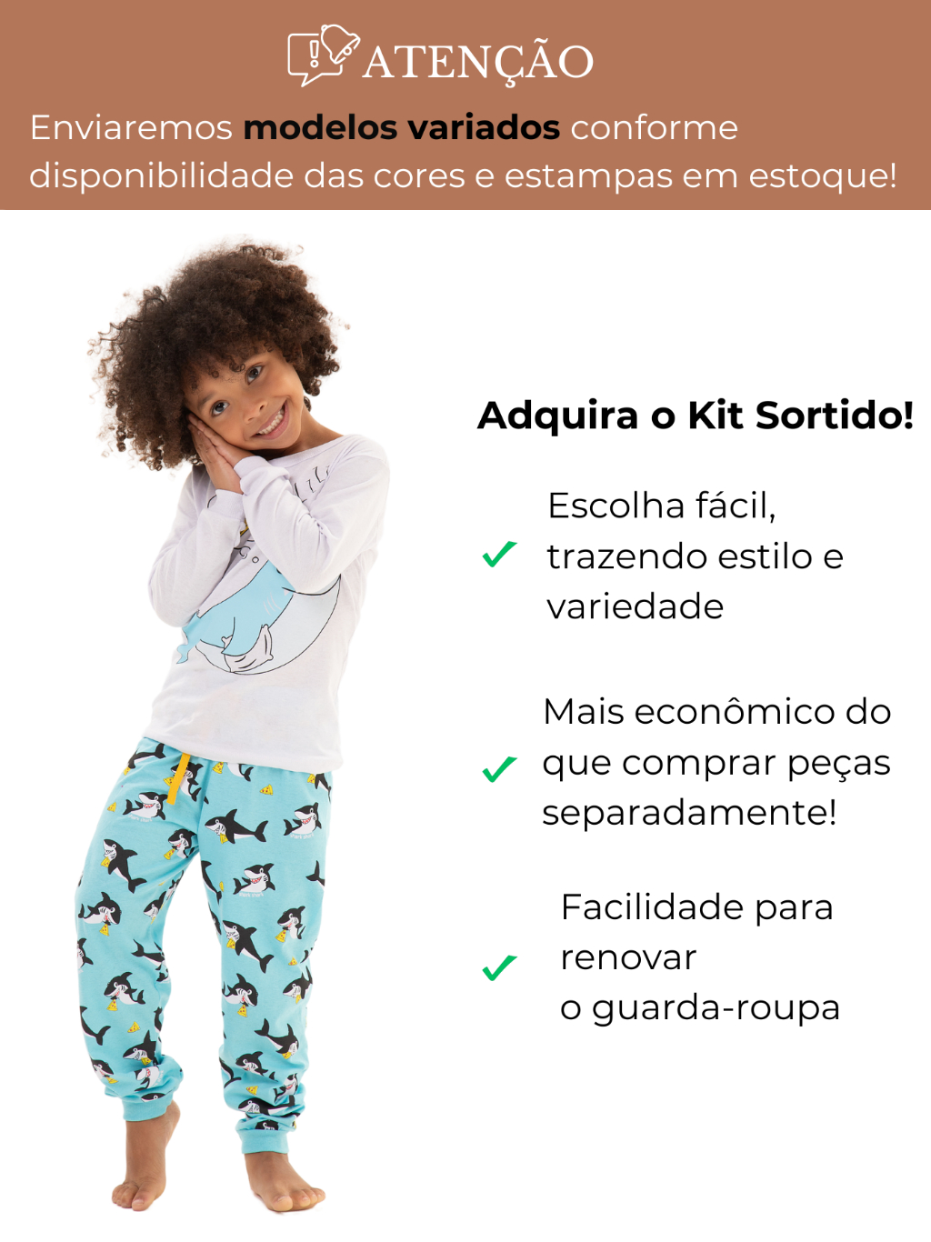Kit Sortido 2, 4 ou 10 Peças Pijamas Infantil Menino Manga Comprida Pijaminha Infantil Masculino de Inverno para o Frio