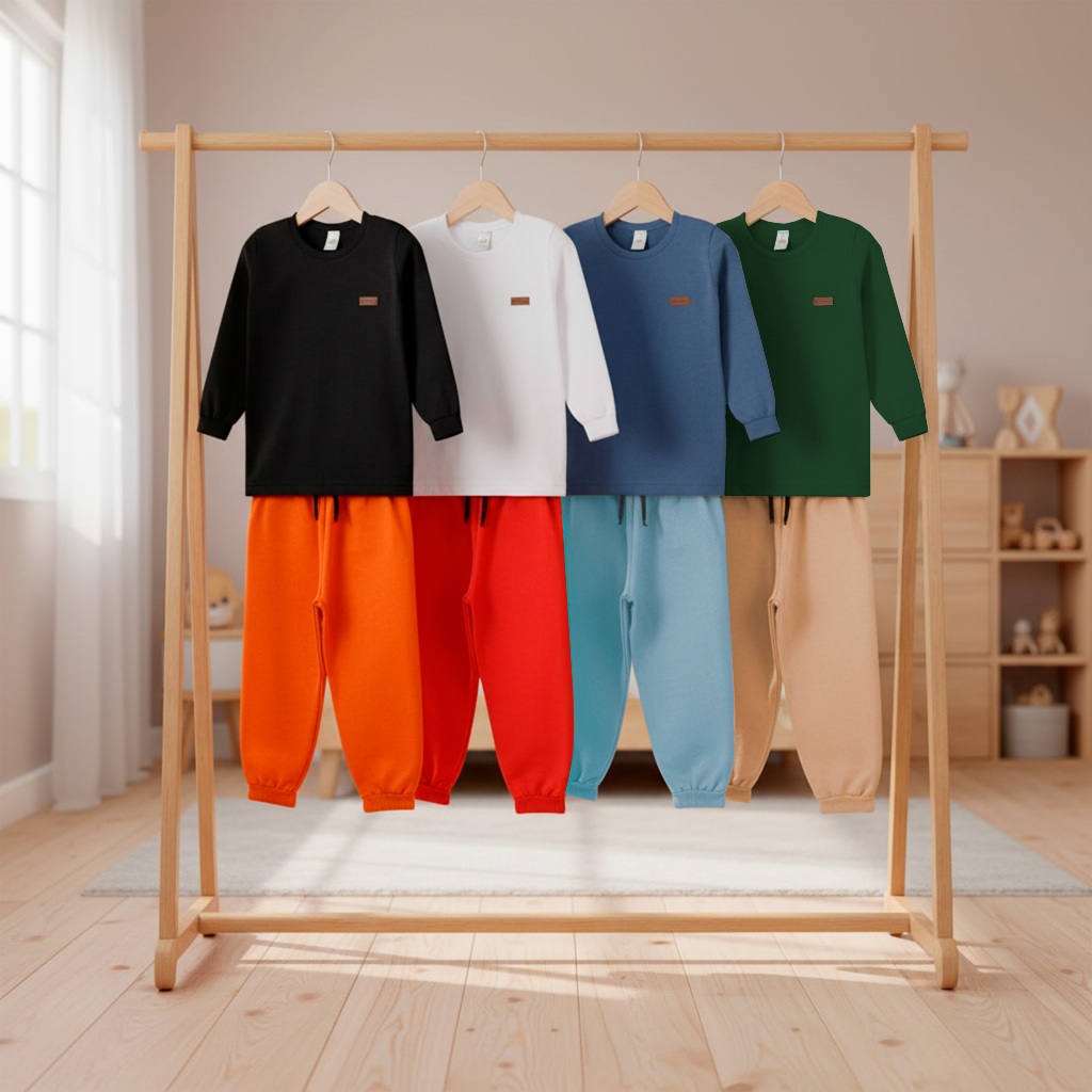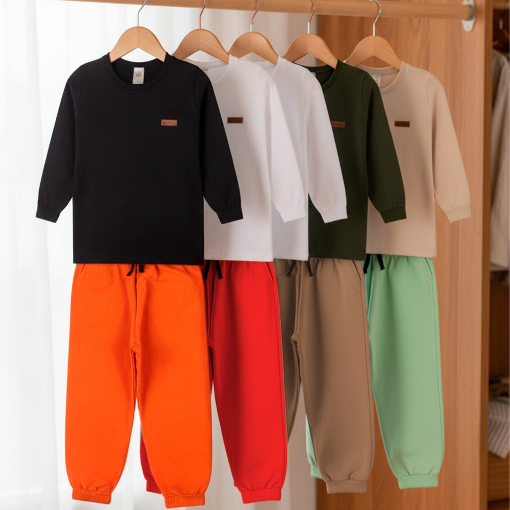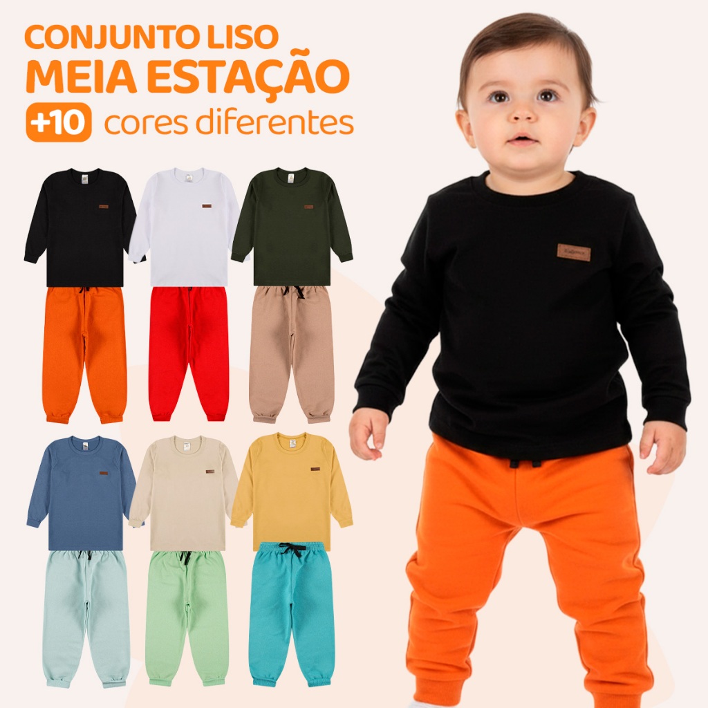 Kit 2, 4 Peças Conjunto Camiseta Manga longa e Calça Moletom Bebe Menino Infantil Conjunto Meia Estação Inverno
