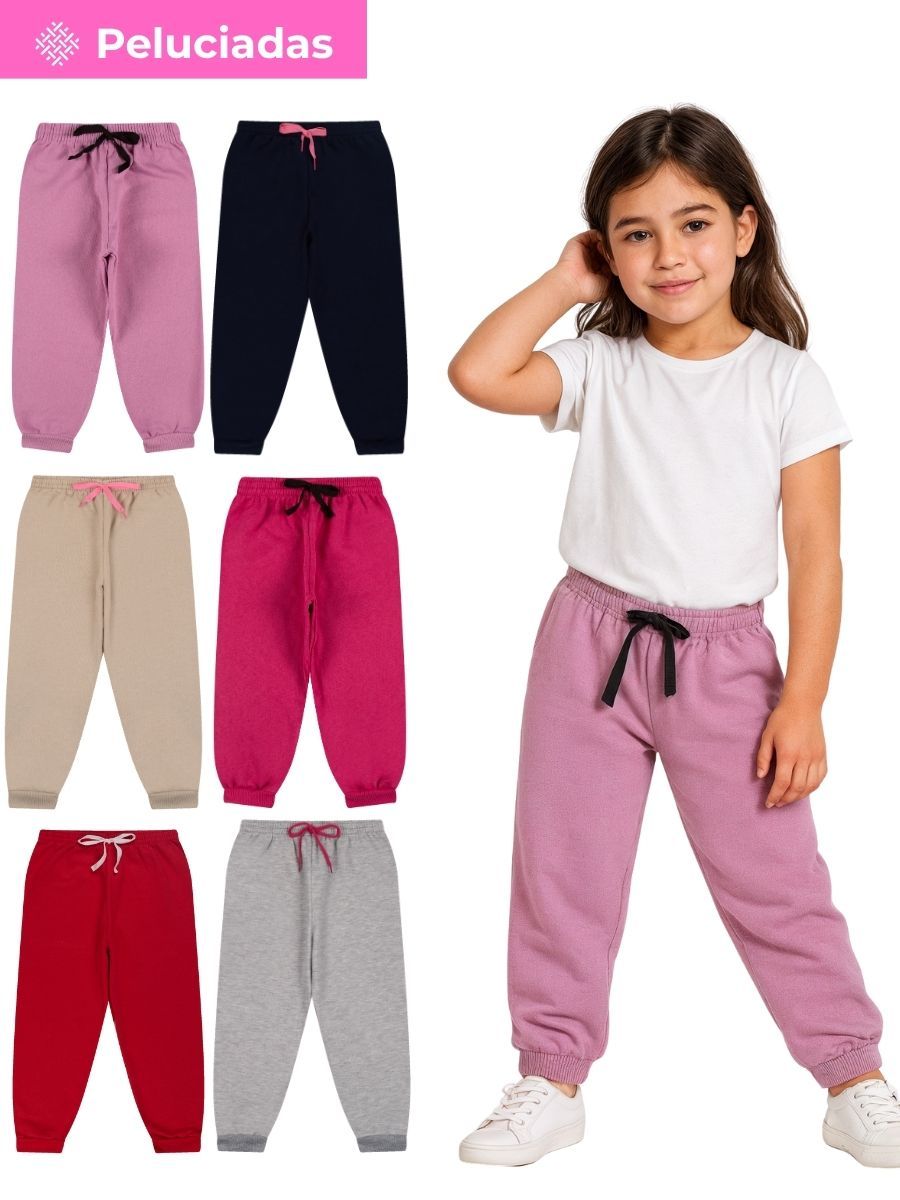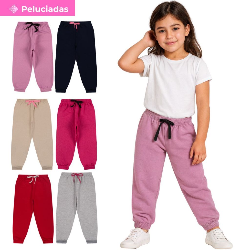 Kit 1, 3 ou 5 Calça Moletom Infantil Menina Peluciada Feminino Bebe Inverno Frio com Punho em Ribana