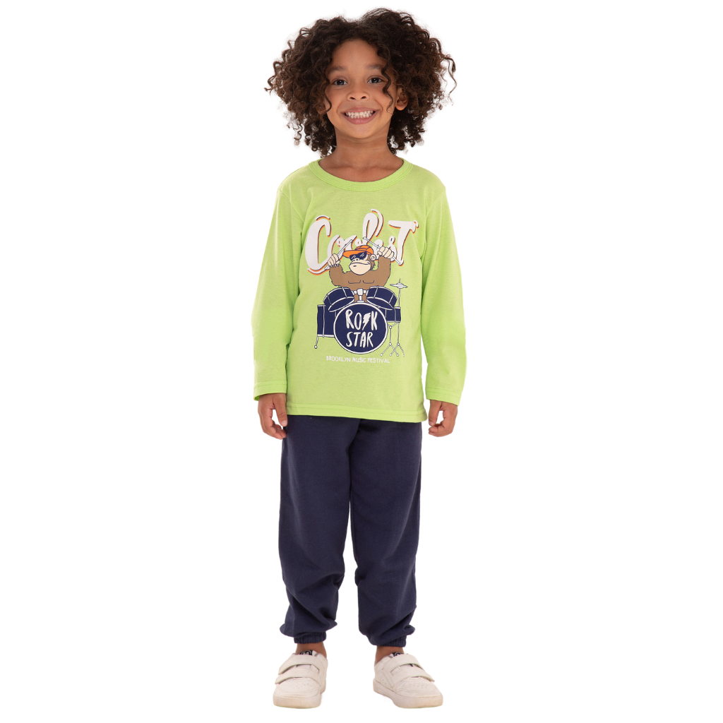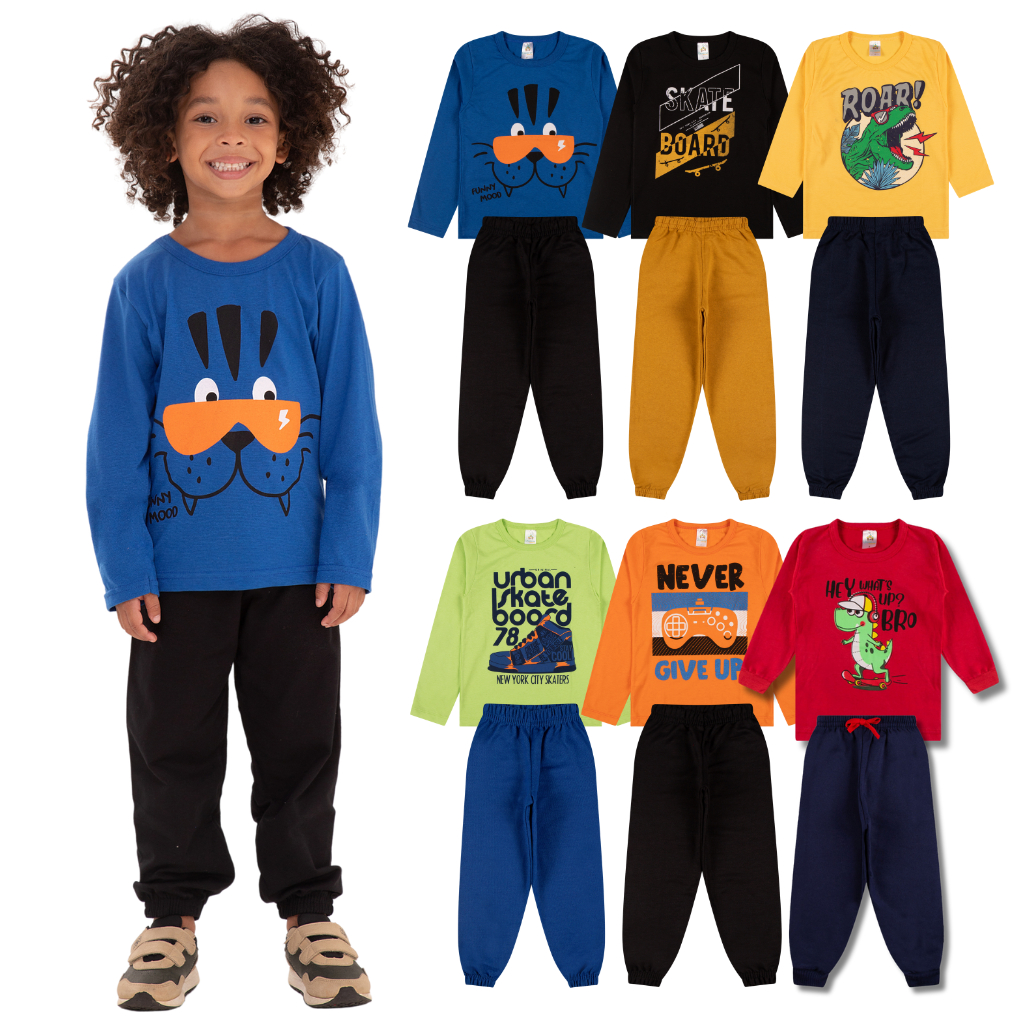 Kit Sortido 6 Peças de Roupas Masculino Infantil Inverno Meia Estação – 3 camisas manga longa + 3 calças de Moletom