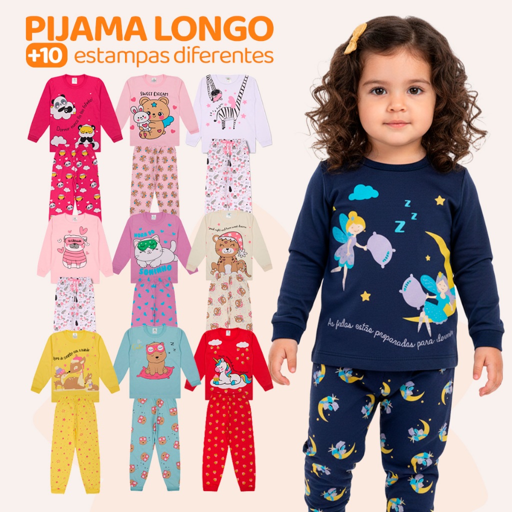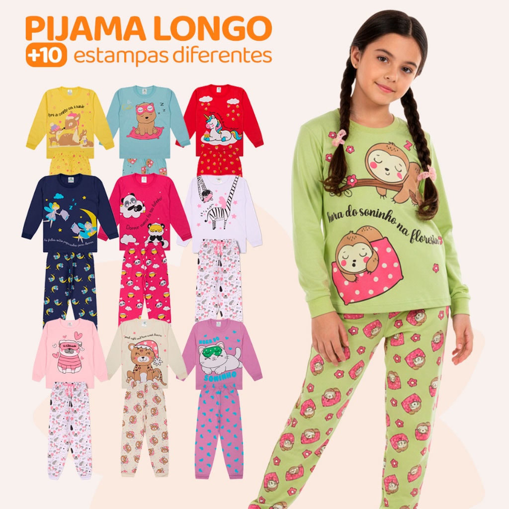 Kit 4 Peças Pijama Infantil Menina Manga Comprida Tamanho 1 ao 10