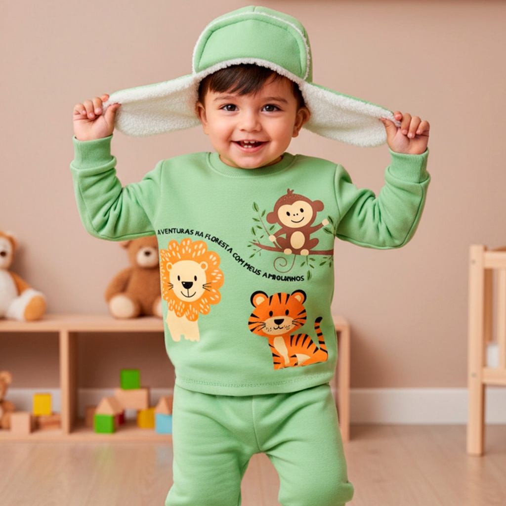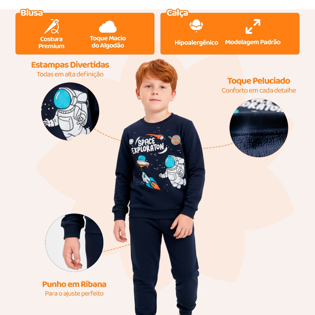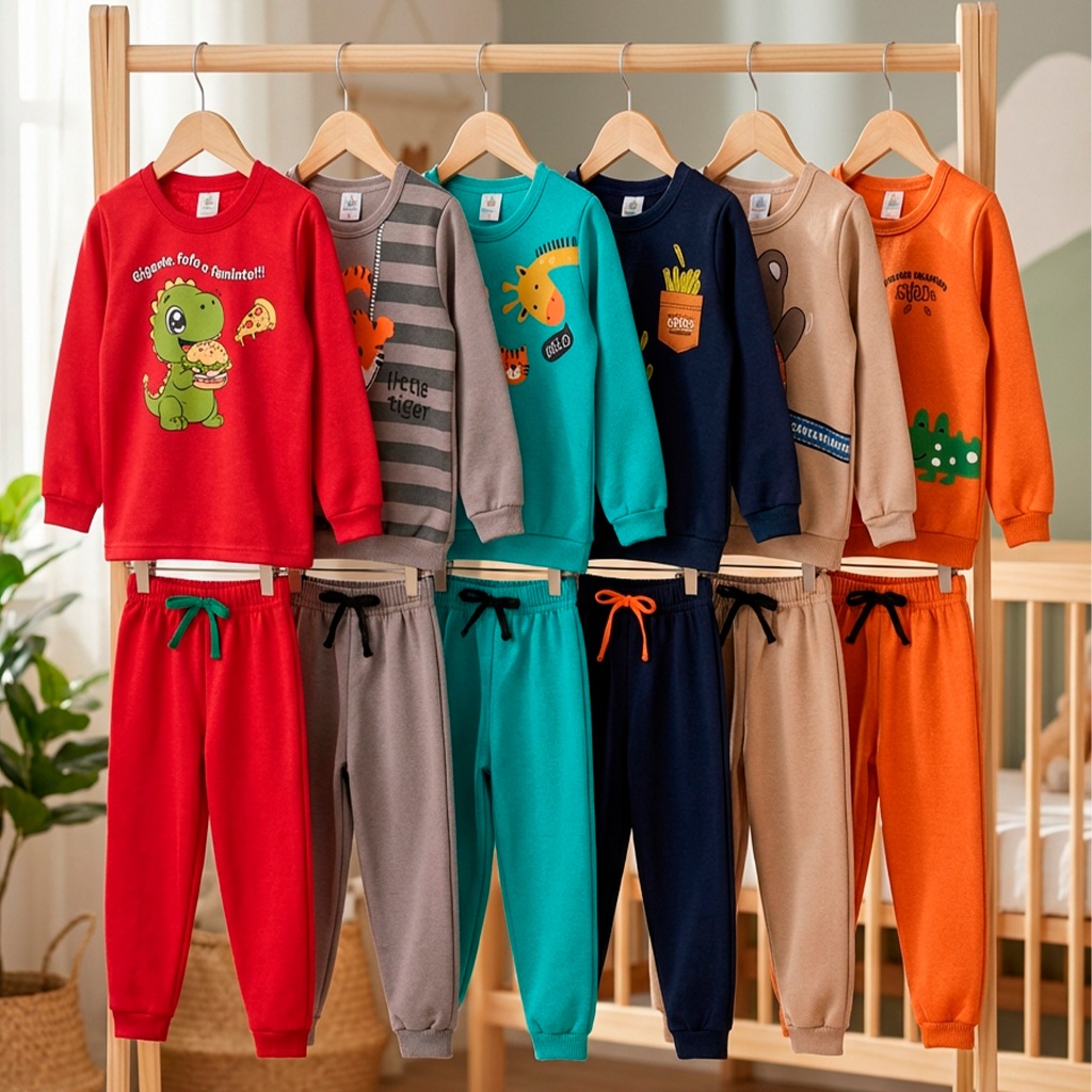 Kit Sortido 2 Peças de Roupas Masculino Infantil Inverno – 1 blusa casaco + 1 calça de 1 ao 10 – Kit 1 Conjunto Moletom