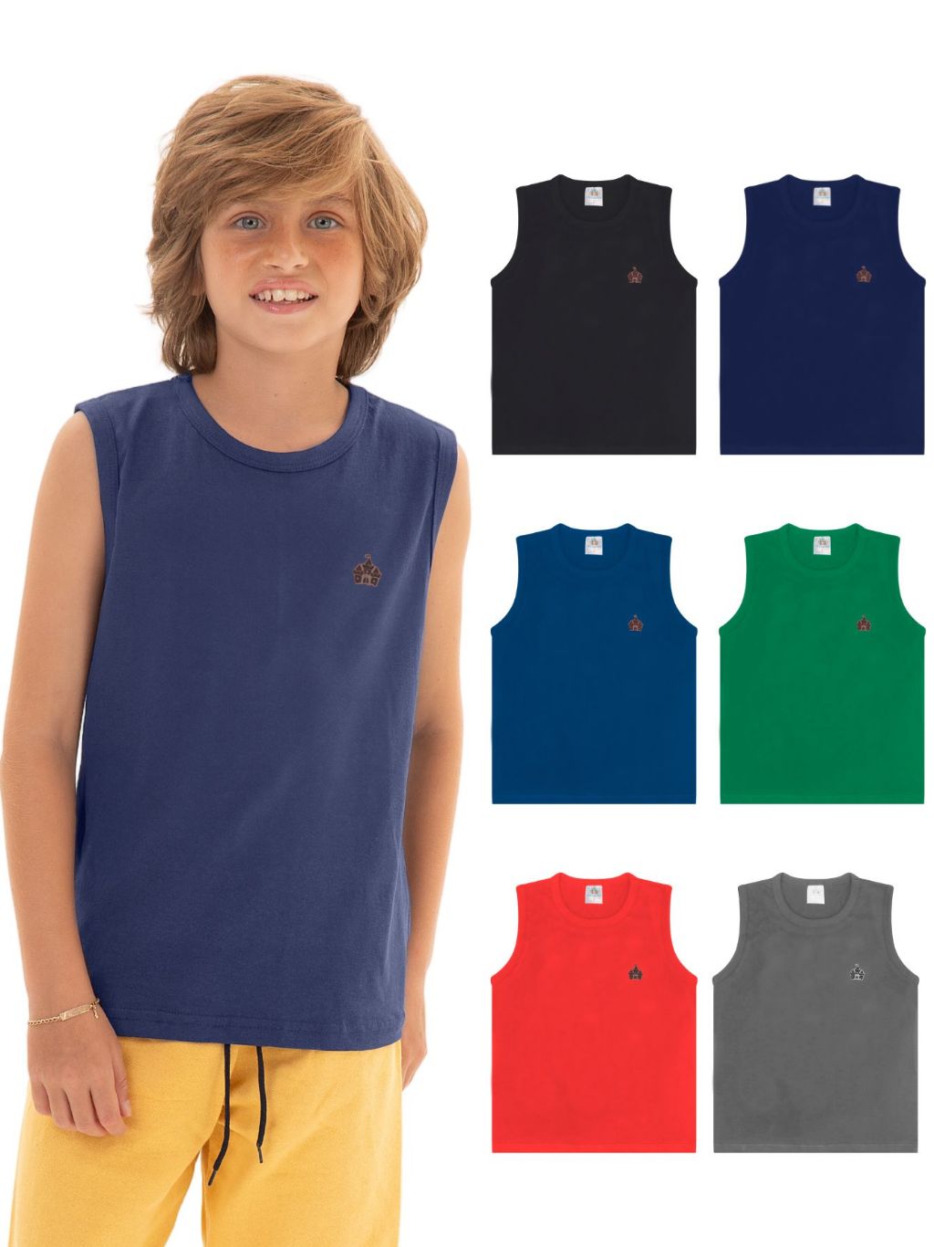 Kit Sortido 5 Regatas Infantil Menino Básica Lisa Tamanho 2 ao 12 Roupa Infantil Bebê Menino Verão Masculino infantil