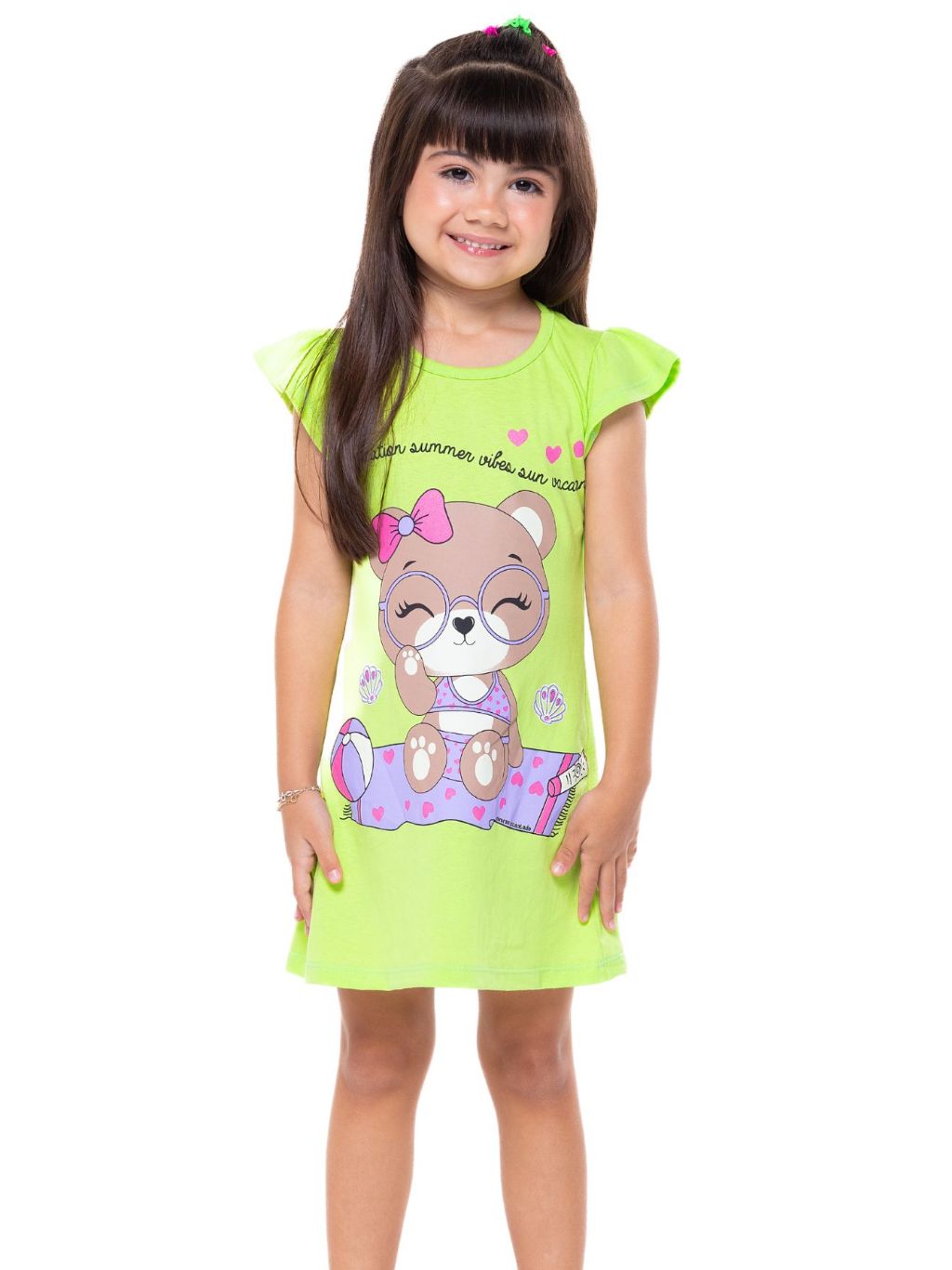 Kit 3 Vestido Bebe Menina Verão Estampados 100% Algodão com Mangas Franzidas - Kit Sortido Tamanhos 1 ao 10