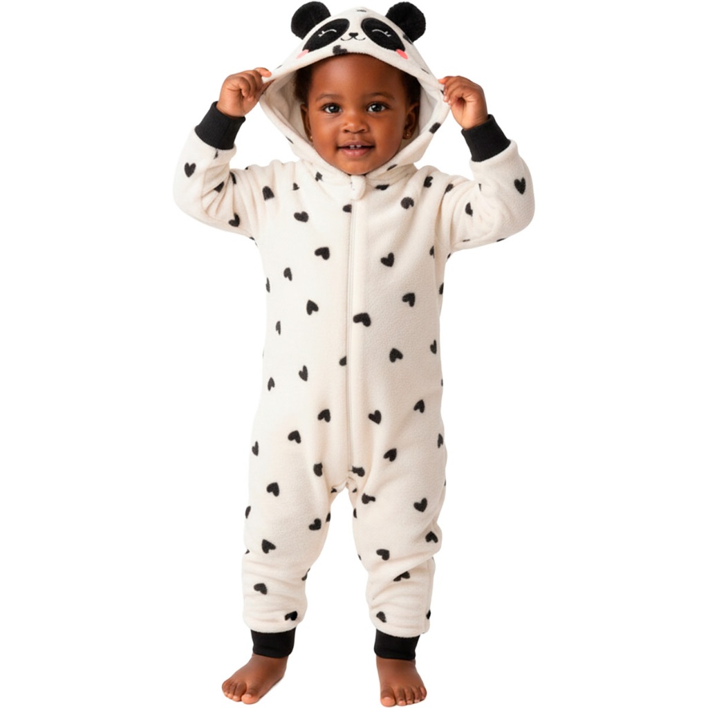 Pijama Macacão Infantil Feminino em Fleece Temático Unicórnio ,Dinossauro, Panda, Urso Super Quentinho e Confortável.L11