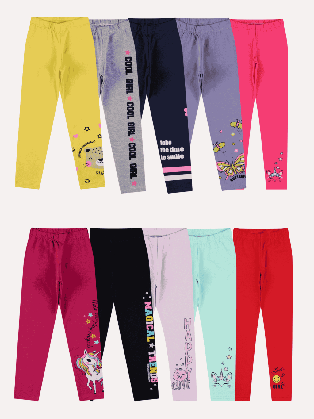 Kit Sortido 1, 3 ou 6 Calças Leggings de Cotton para Bebês Meninas Infantil Feminino Com Estampas Fofas