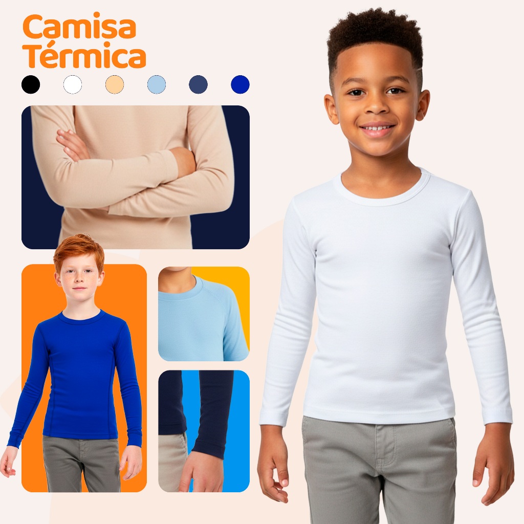 Kit 2 Blusa Térmica Infantil Masculina Blusa de Frio De Menino Segunda Pele Inverno Manga Longa