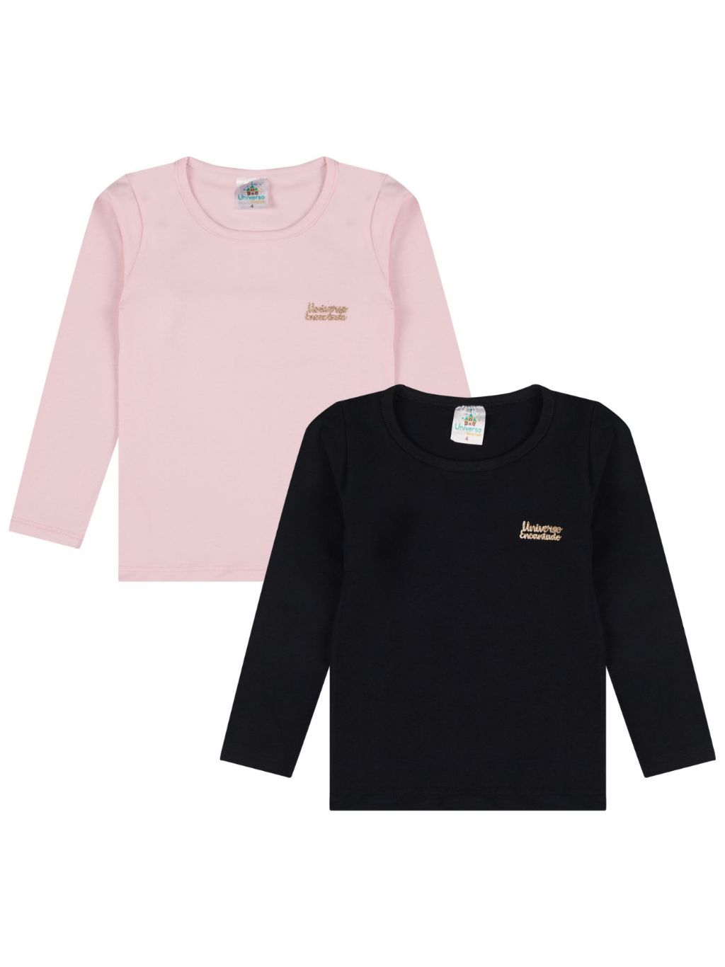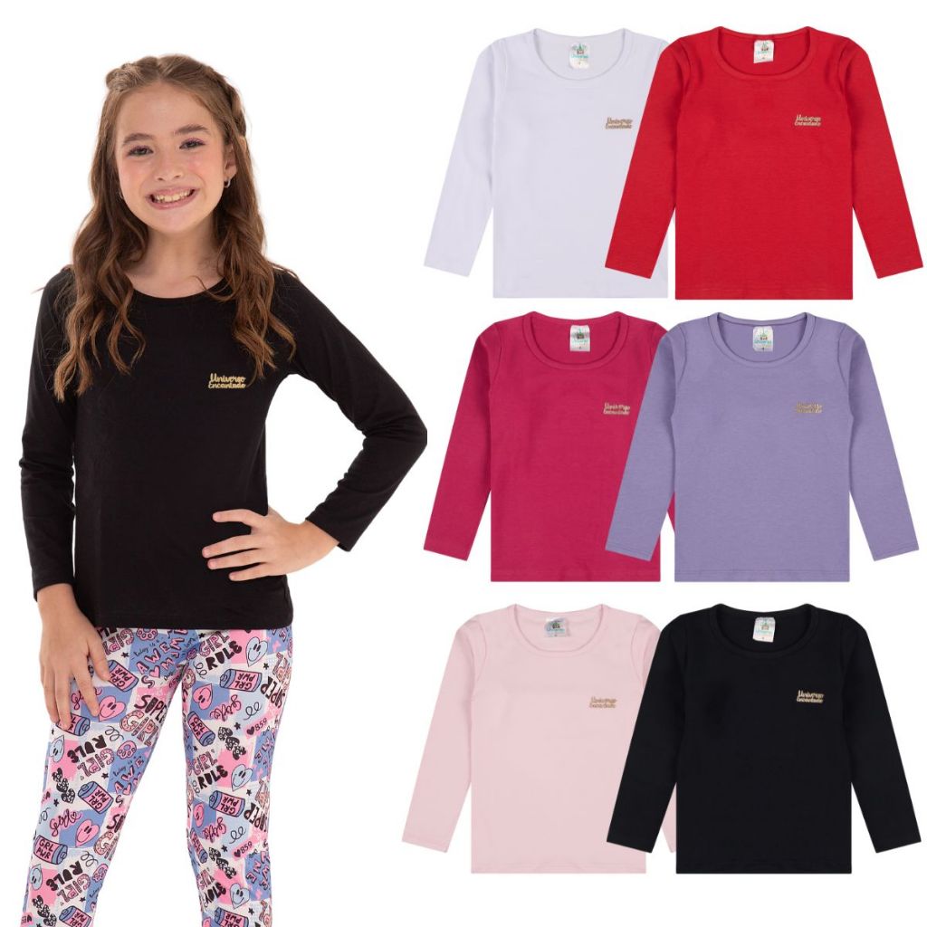 Kit 1, 3 ou 5 Blusas Manga Longa Infantil Menina Algodão Lisa Feminino de Inverno Quentinho