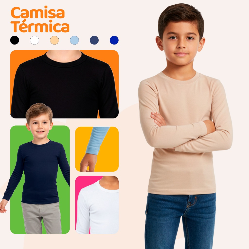 Kit Sortido de 1, 2 ou 3 Blusas Térmicas Infantil Menino Manga Longa Camisa Térmica Infantil Masculina Roupa de Inverno