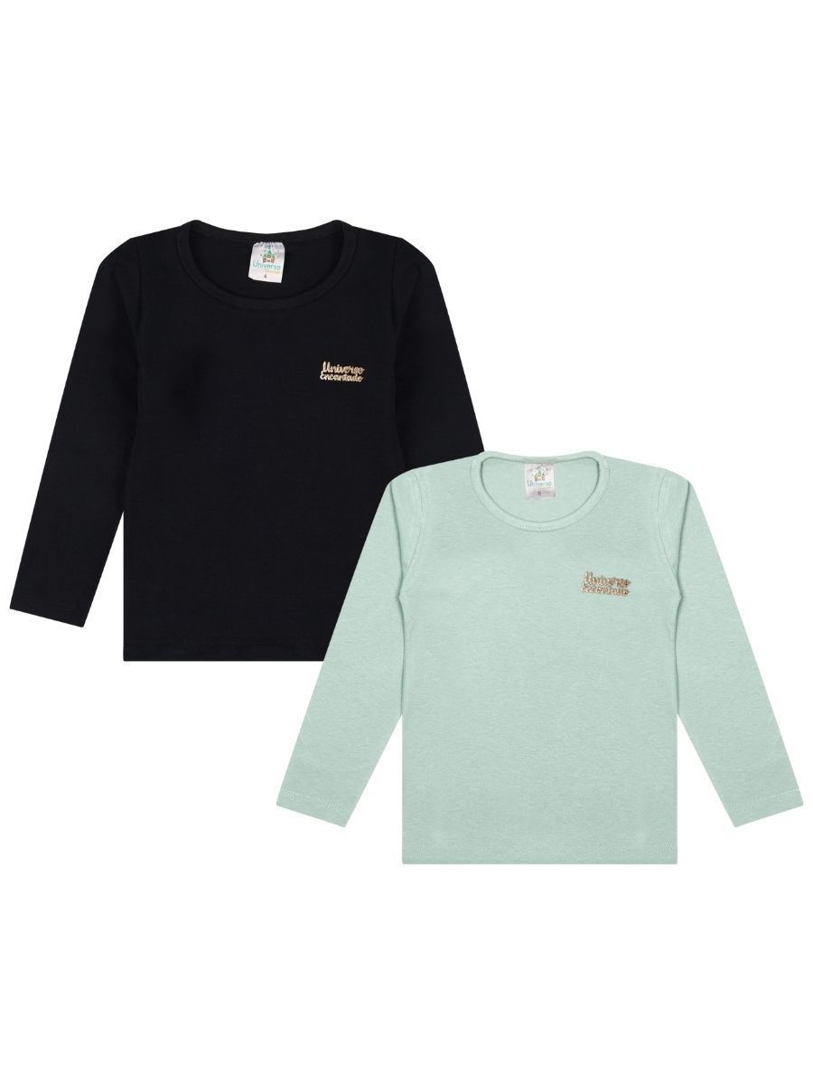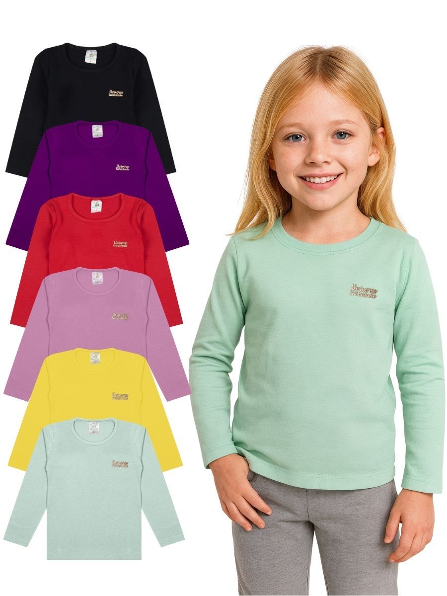 Kit 5 Blusas Manga Longa Infantil Menina Algodão Lisa