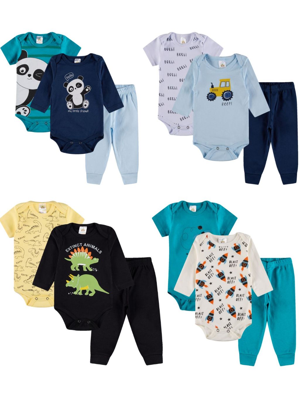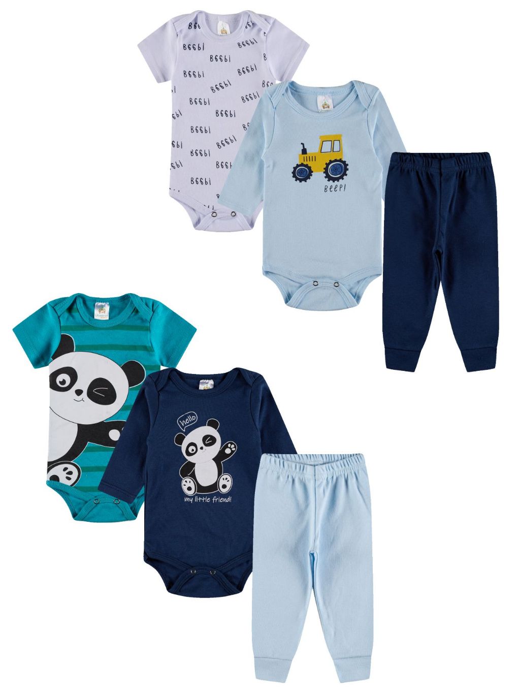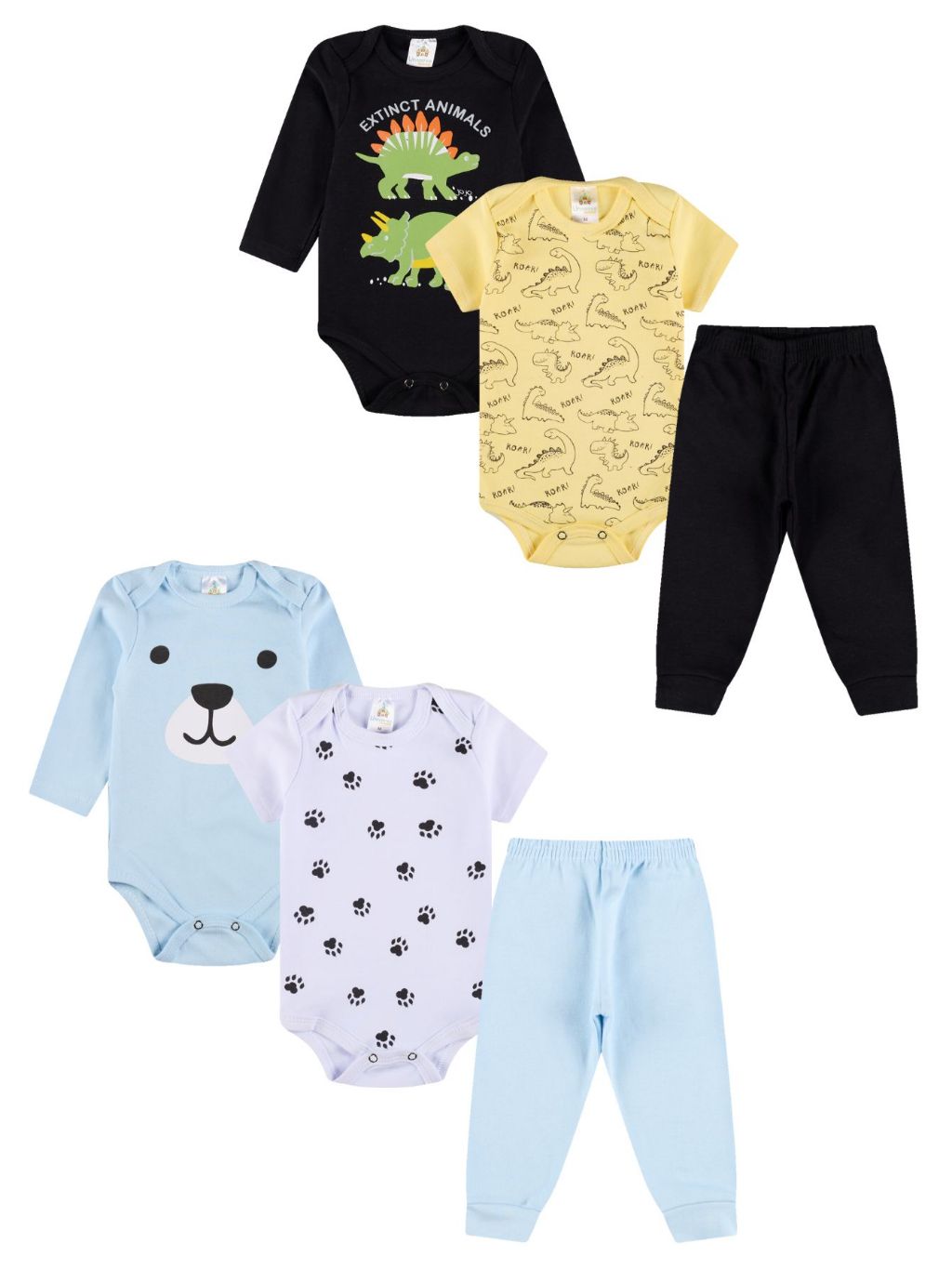 Kit Body 6 Peças de Roupas para Bebê Menino (2 Body Curto + 2 Body Longo + 2 Calça Mijão) Kit 2 Conjuntos Body