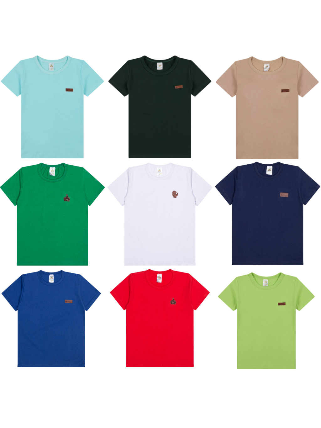Kit com 2, 6 ou 8 Camisetas Infantis Manga Curta para Bebê Menino Modelagem Básica Lisa Roupas Leves Confortáveis