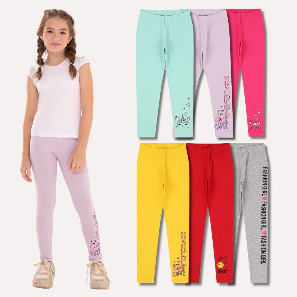 Kit Sortido de 5 Calças Leggings de Cotton para Meninas Tamanho 2 ao 10 Roupa Infantil Menina Bebê