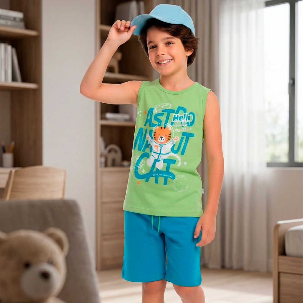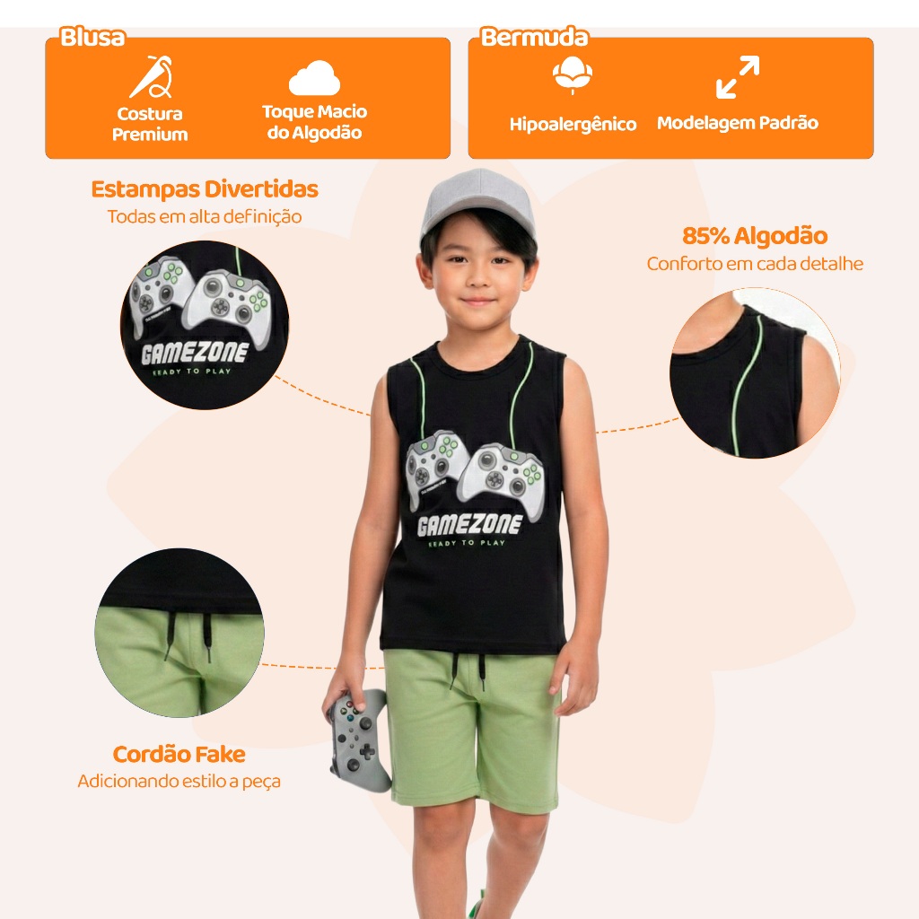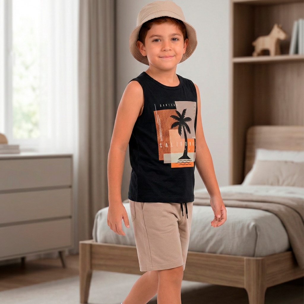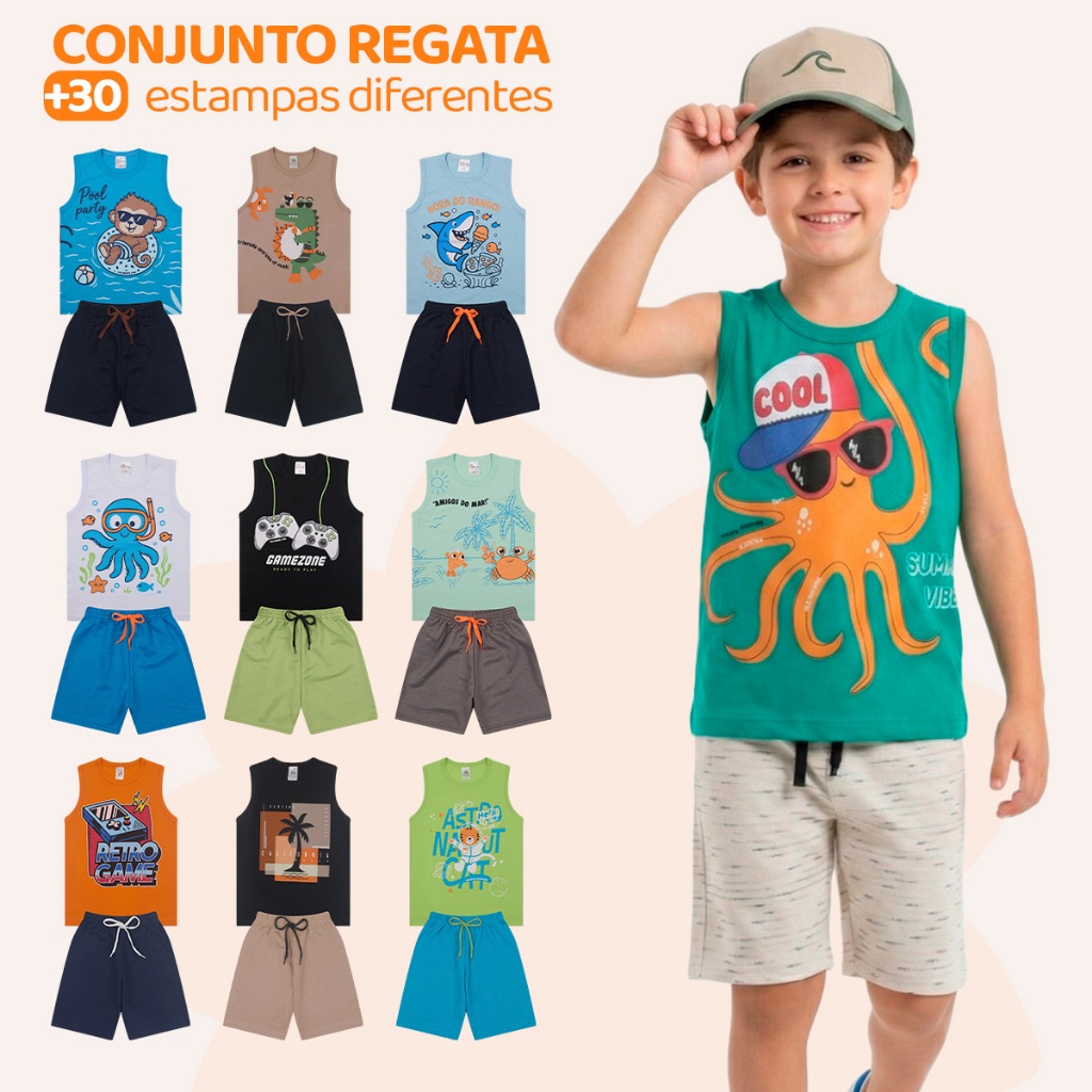 Kit 2 6 Ou 8 Peças de Conjunto Regata para Meninos Infantil Masculino Regata e Bermuda Moletinho em Algodão para Verão