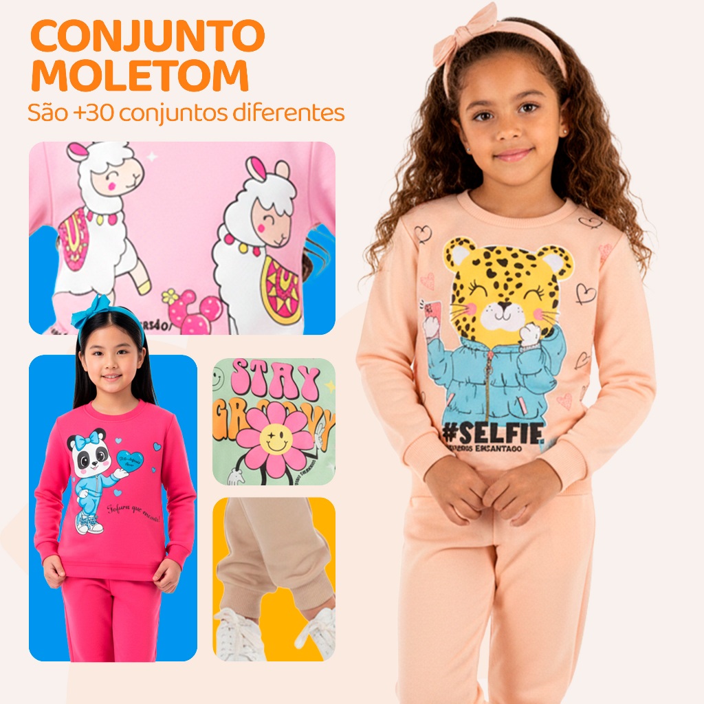 Conjunto Moletom Menina – Escolha o Modelo, com Estampas Fofas e Muito Conforto Infantil Bebê Feminino Frio Inverno. L04