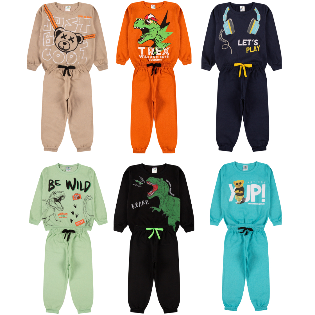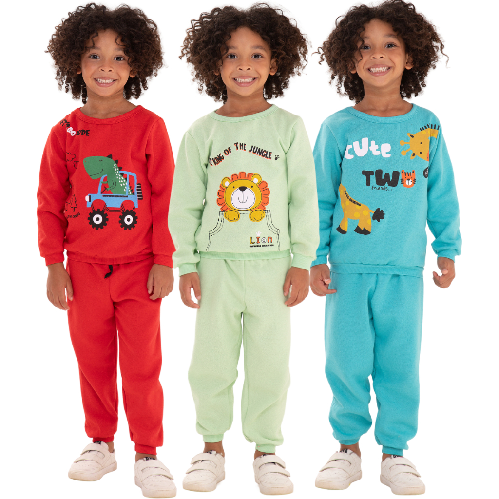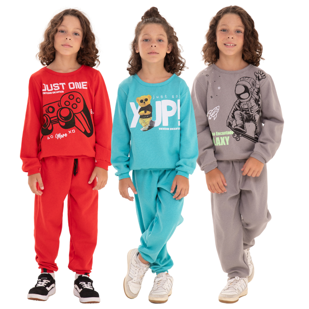Kit Sortido 6 Peças de Roupas Masculino Infantil Inverno – 3 blusas casacos + 3 calças de 1 ao 10 – Kit 3 Conjuntos