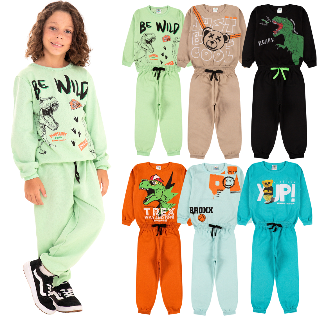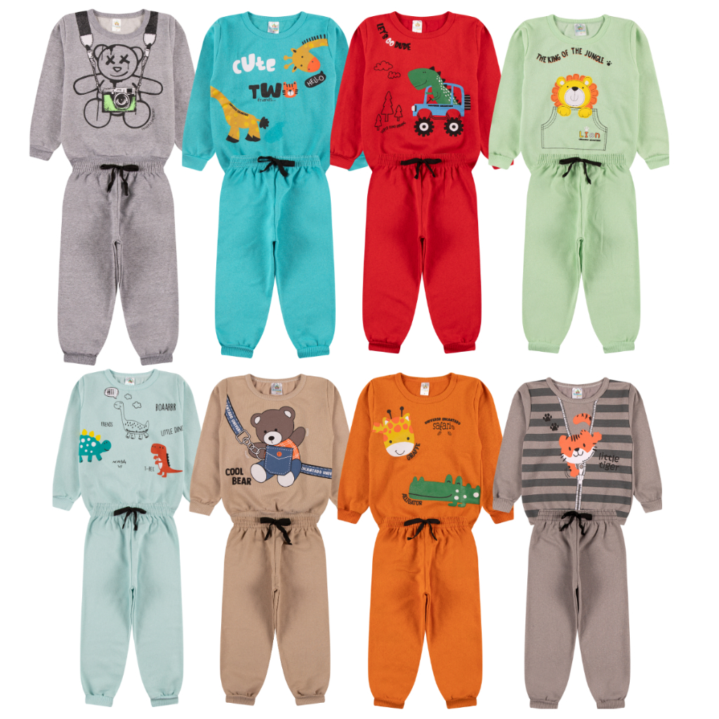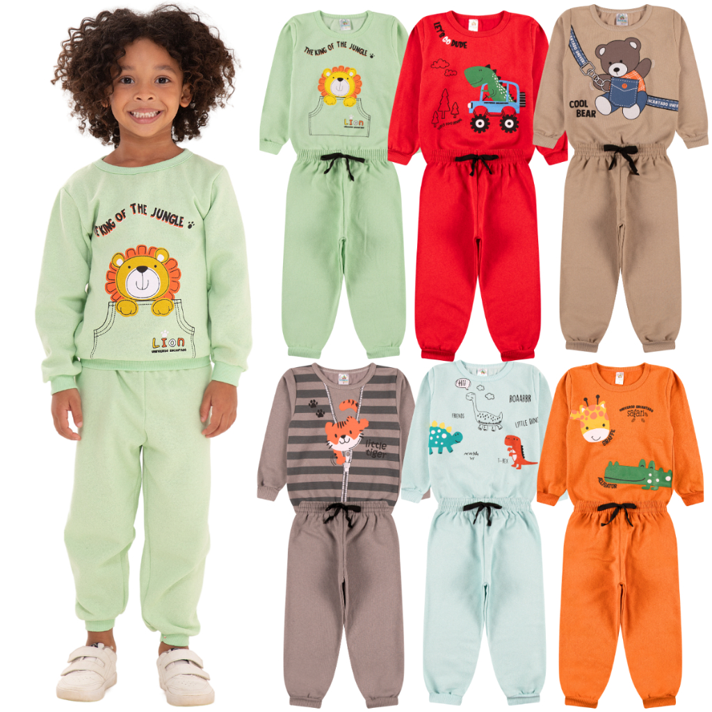 Kit Sortido 6 Peças de Roupas Masculino Infantil Inverno – 3 blusas casacos + 3 calças de 1 ao 10 – Kit 3 Conjuntos