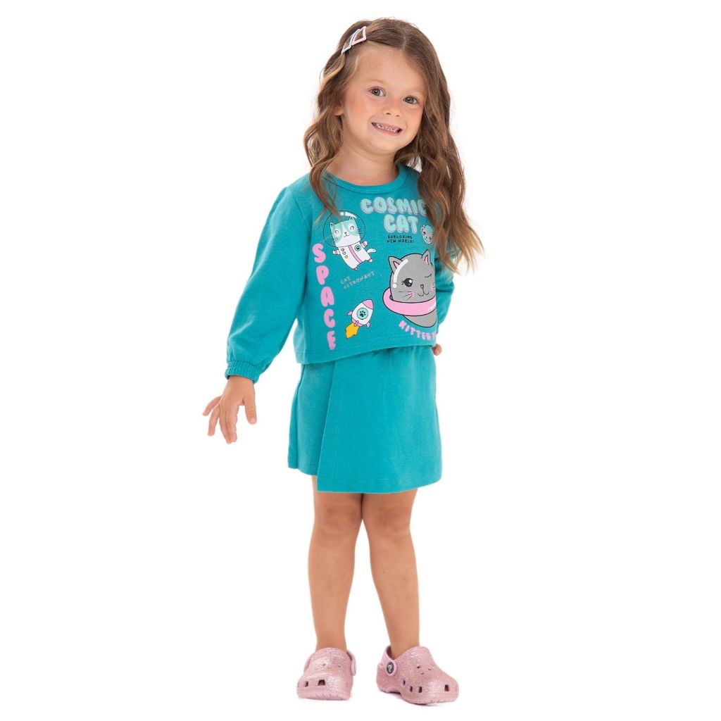Kit Sortido 2 ou 4 Peças Menina Short Saia e Cropped Moletinho 100% Algodão Tamanho 2 ao 10
