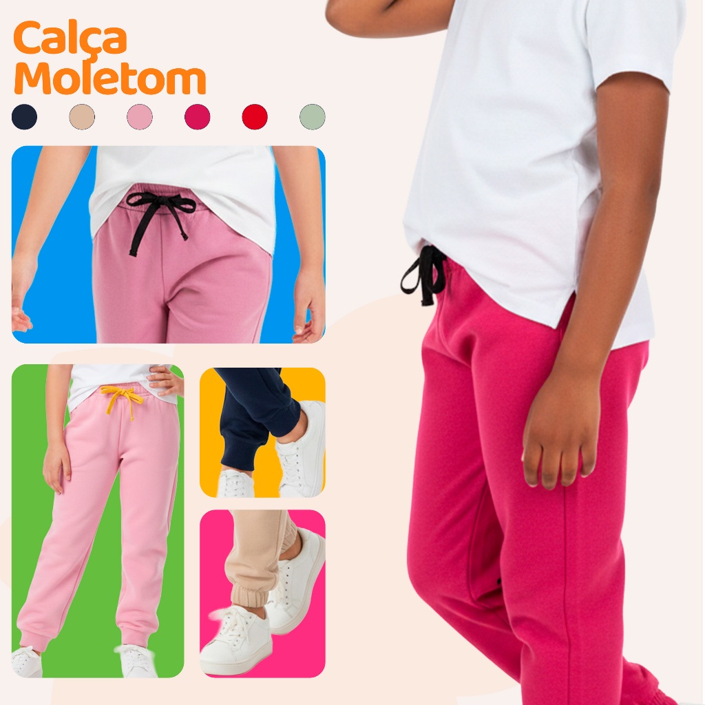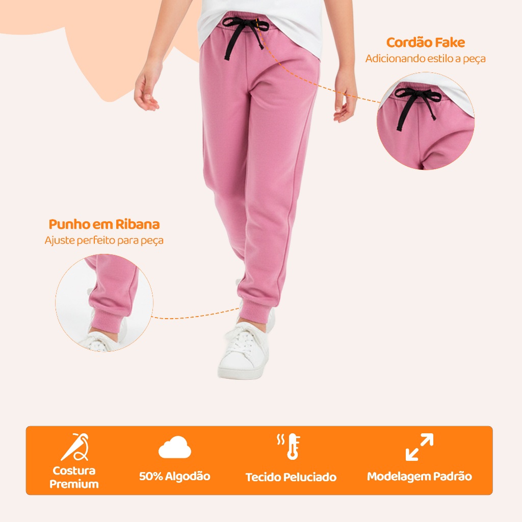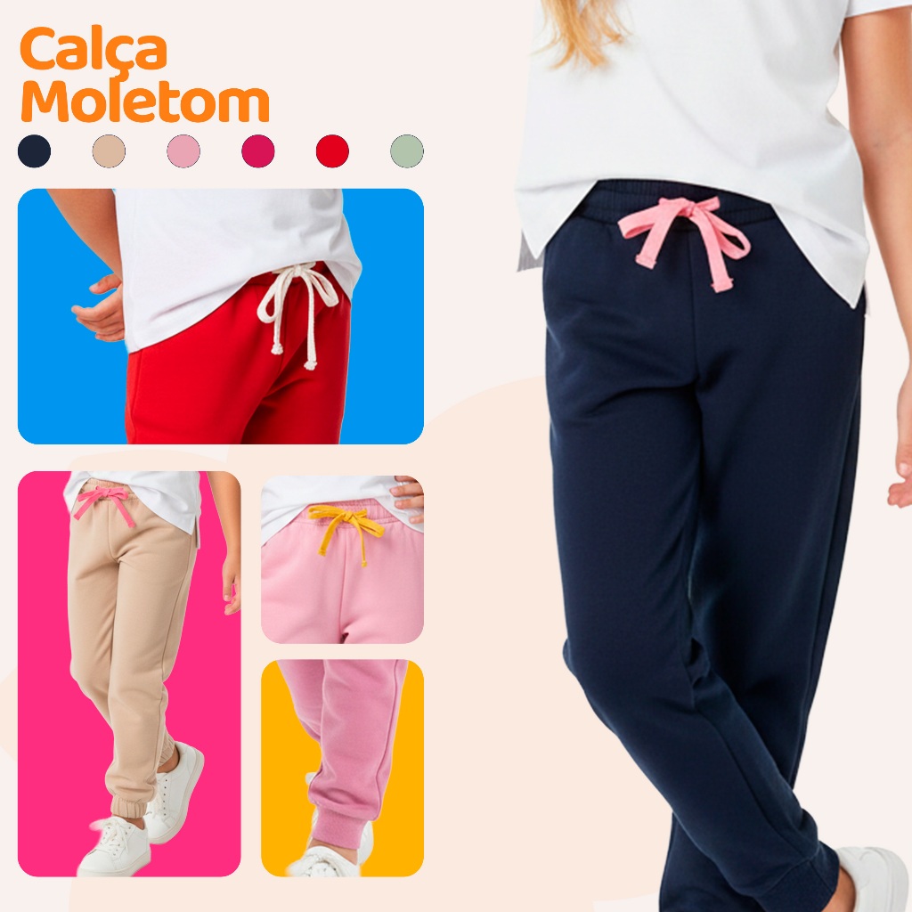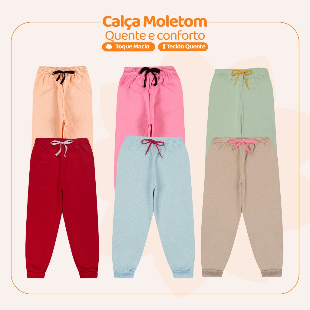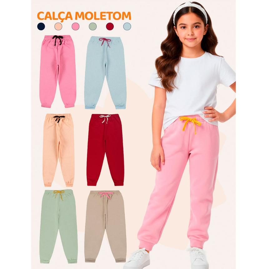 Kit Infantil 1, 3 ou 5 Calças de Moletom Peluciado Menina Feminino Tamanho 1 ao 10 Para Inverno Frio