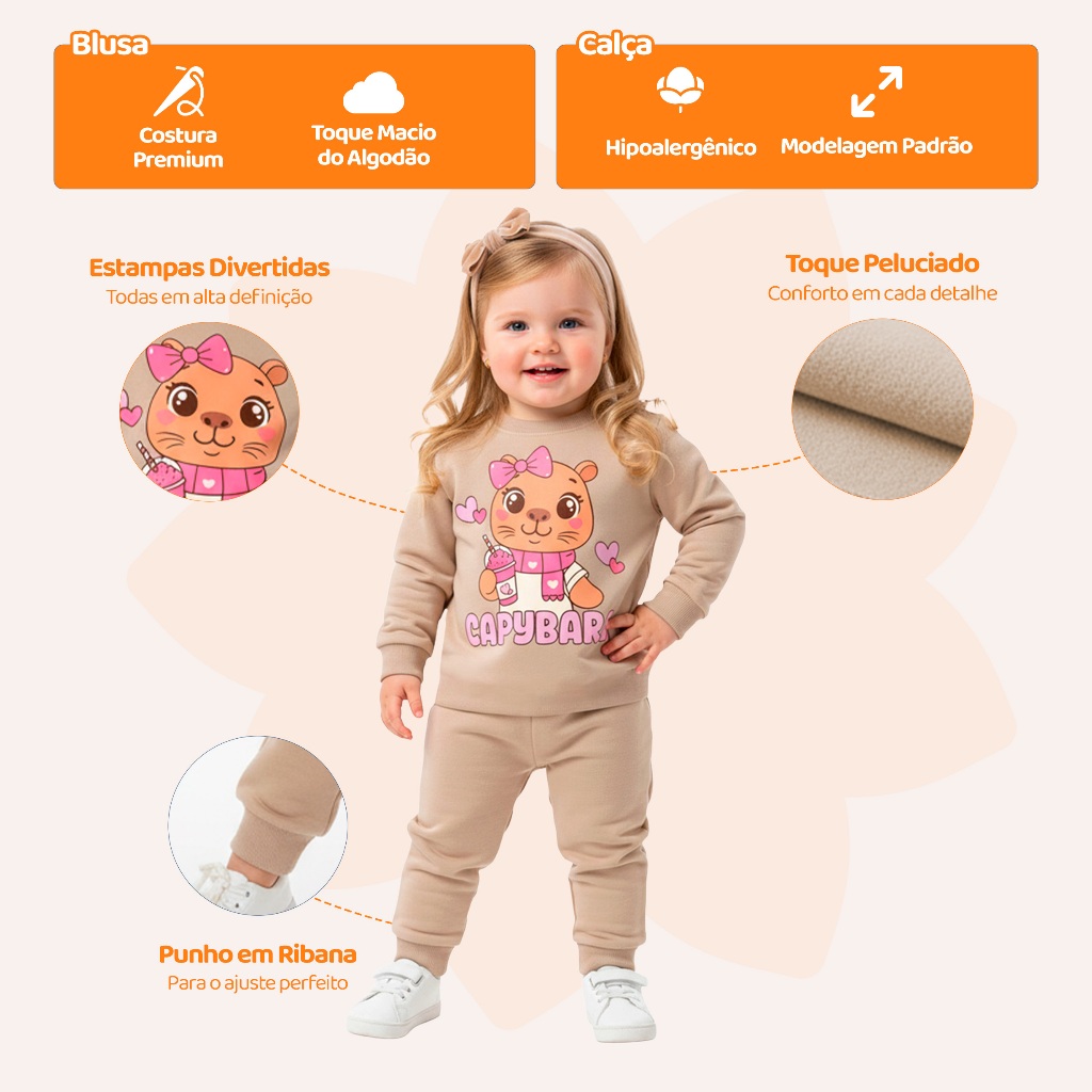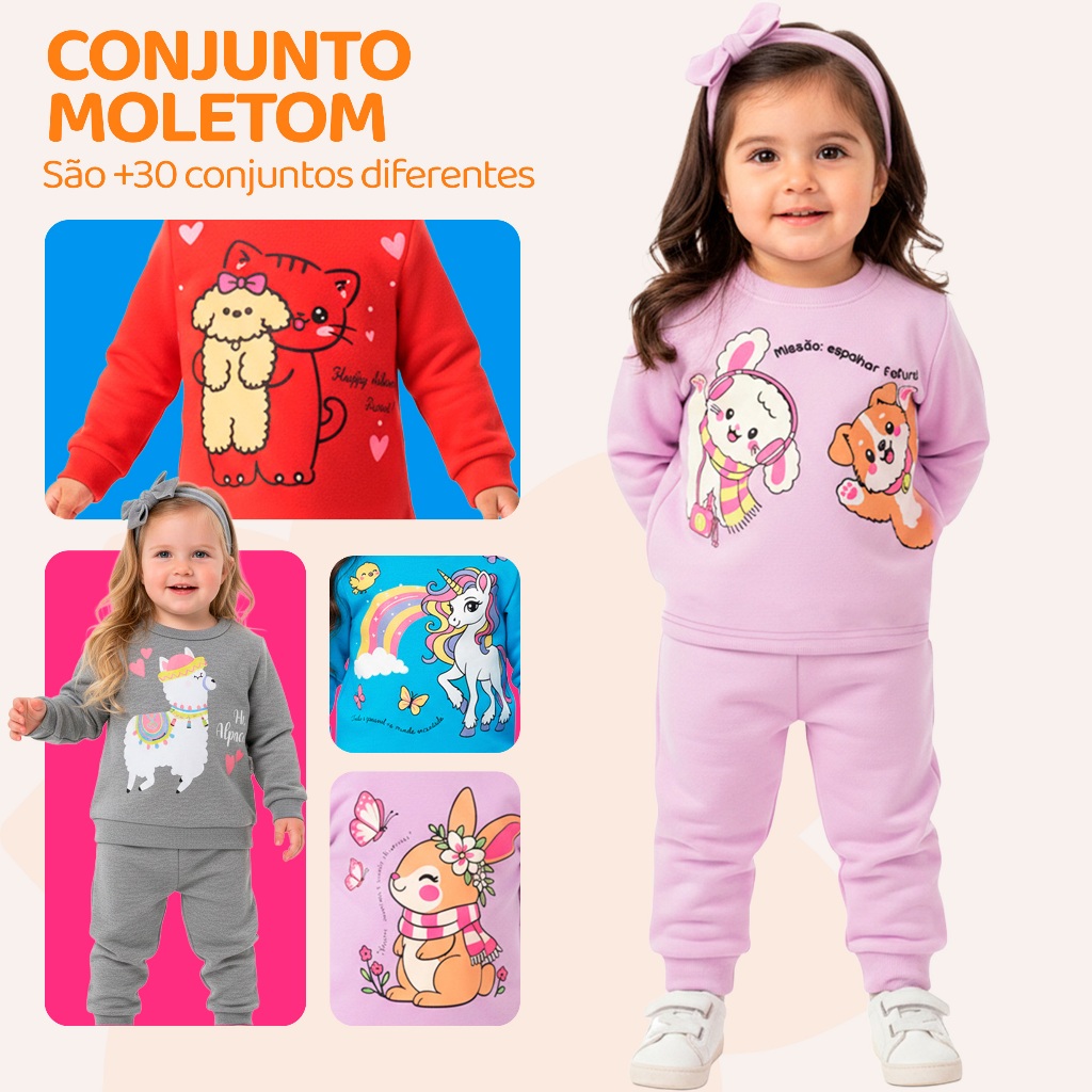 Kit Sortido 4 Peças Moletom Roupa De Bebê Menina Infantil Inverno - 2 Casacos + 2 Calças - Tamanhos 6 Meses a 24 Meses