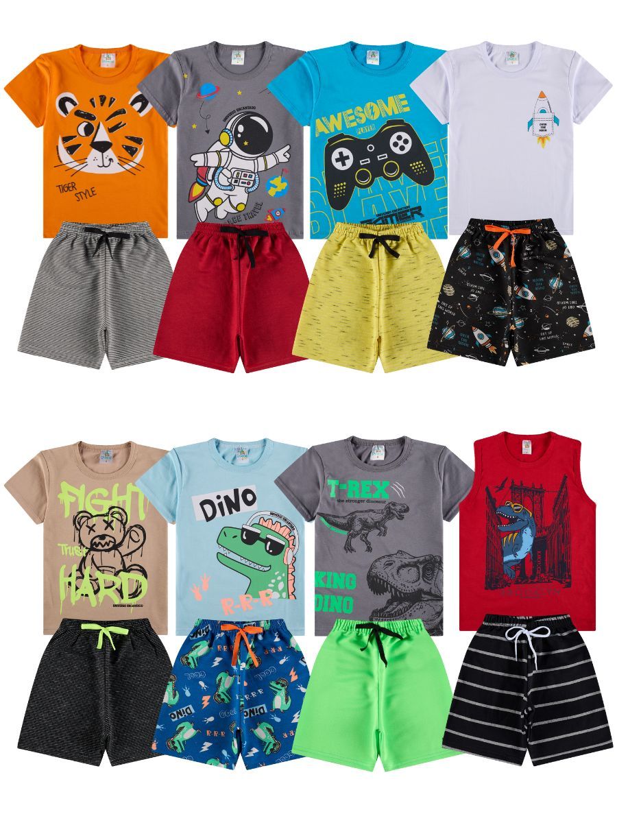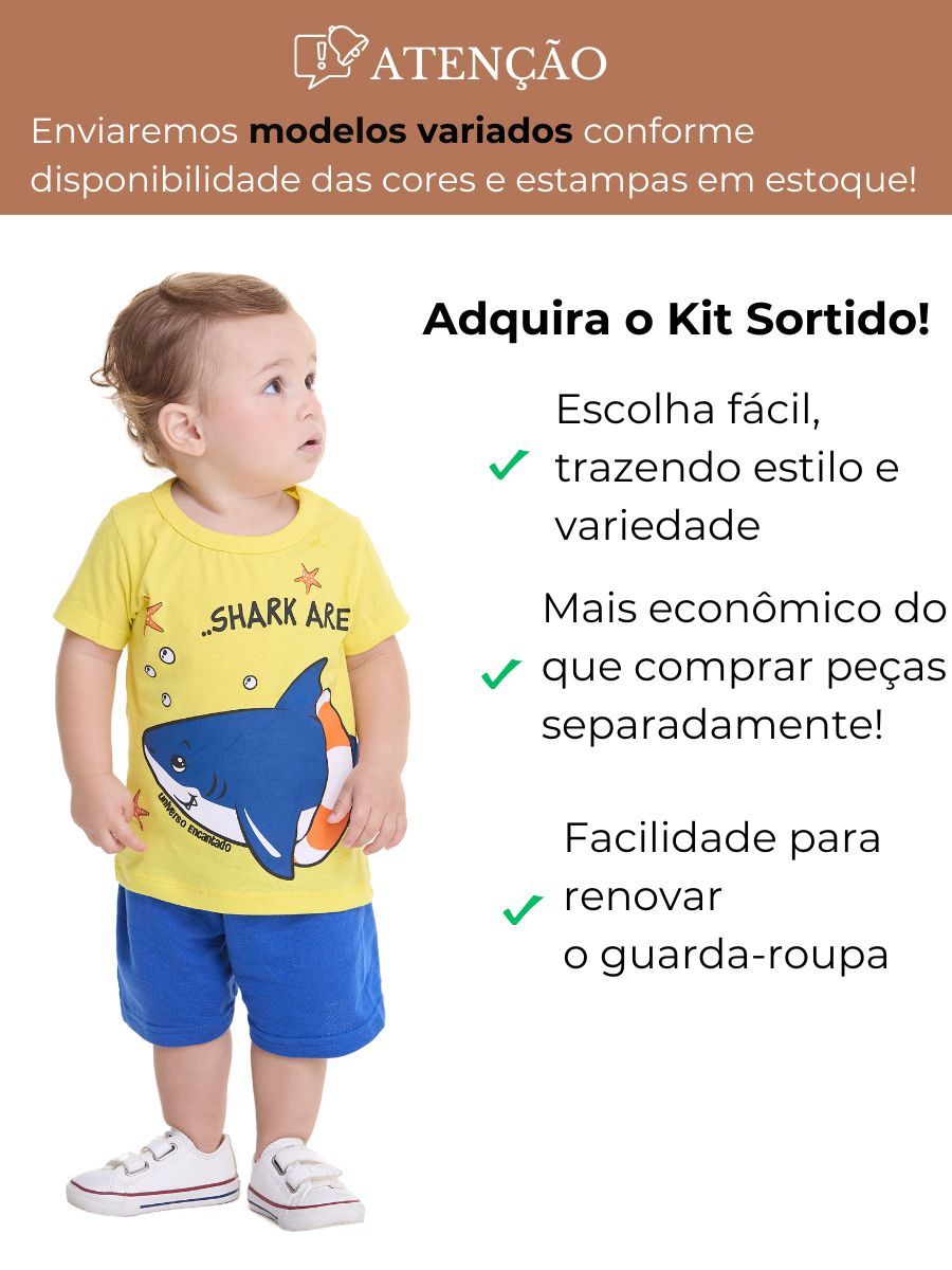 Kit Sortido 4, 10 ou 16 Peças de Roupas Infantil Bebê Menino Camisetas + Bermudas ou Roupa Bebê Conjunto Verão dia Calor