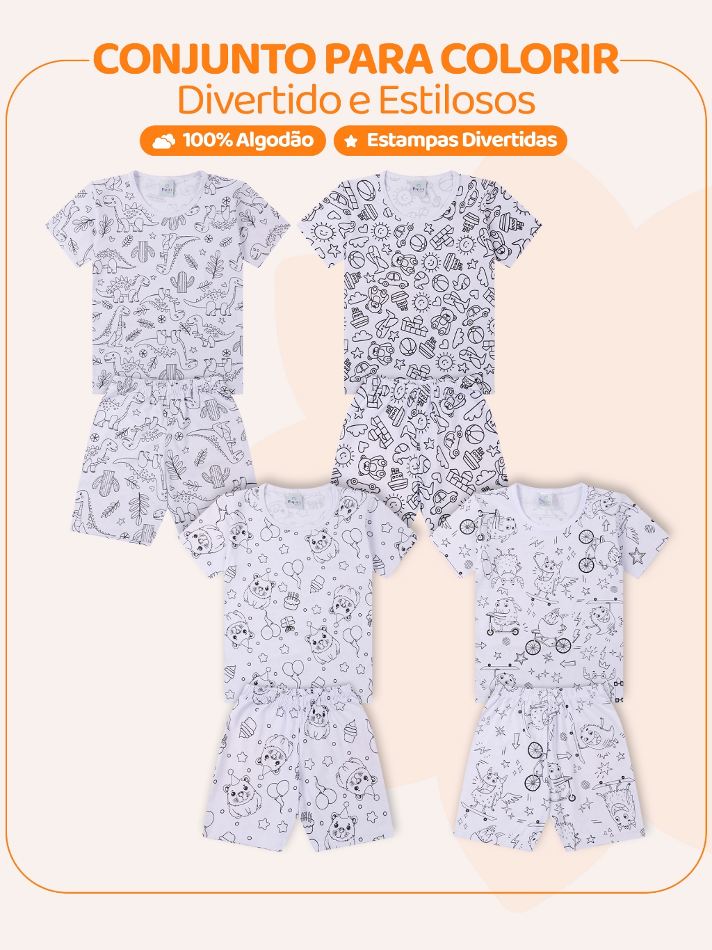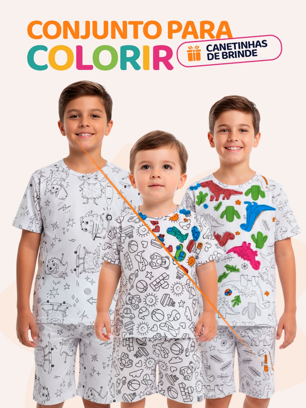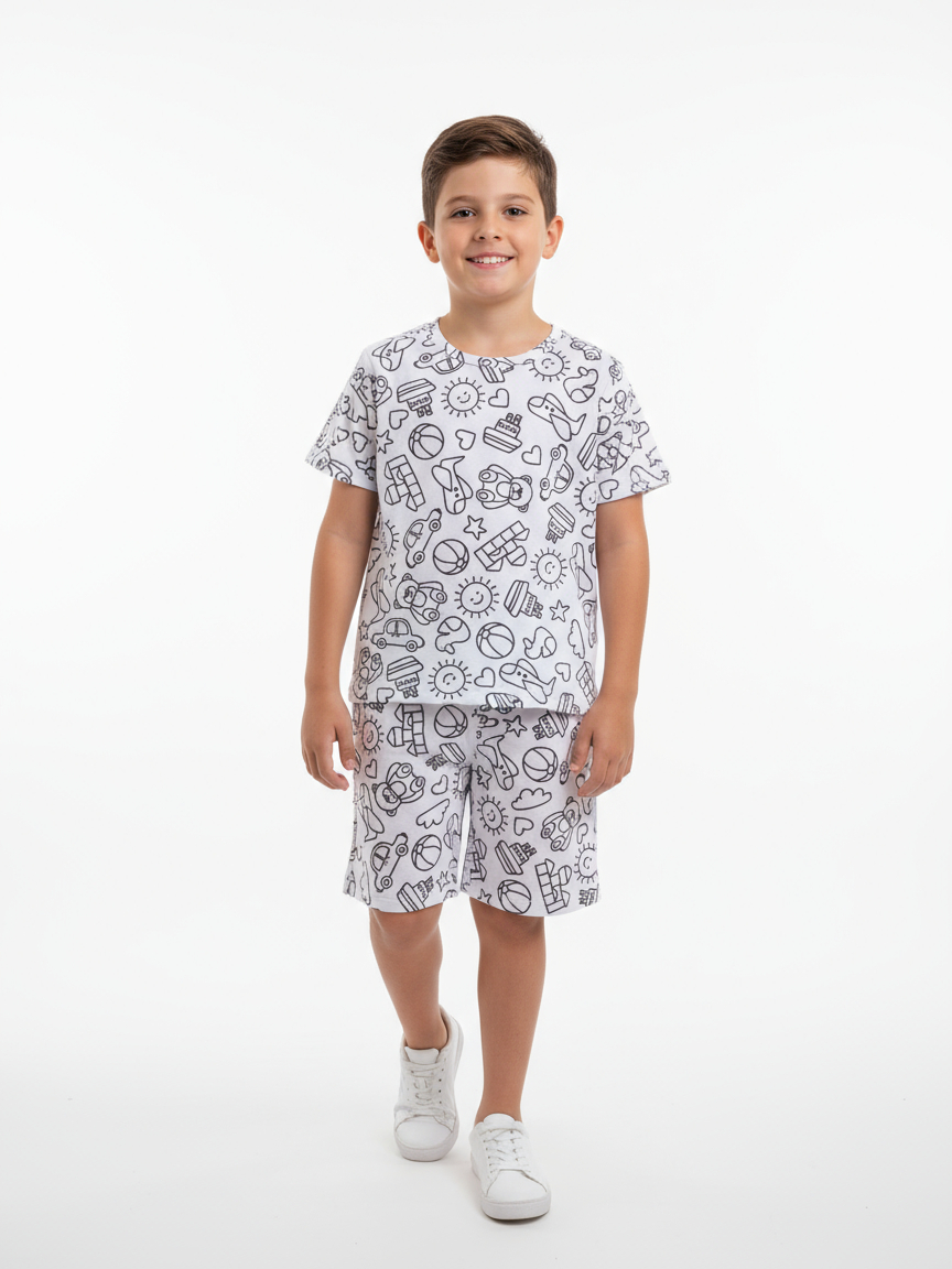 Kit de 1, 2 ou 3 Conjuntos Pijama Infantil Menino de Colorir + Canetinhas Pijama Infantil Masculino