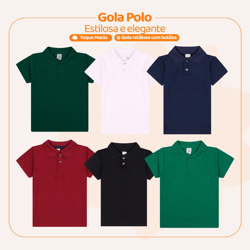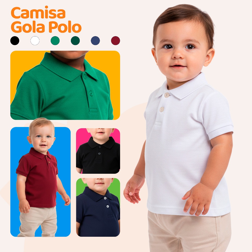Camisa Polo Bebe Menino Infantil Estilo Casual de algodão Basico nos tamanhos 2 ao 10
