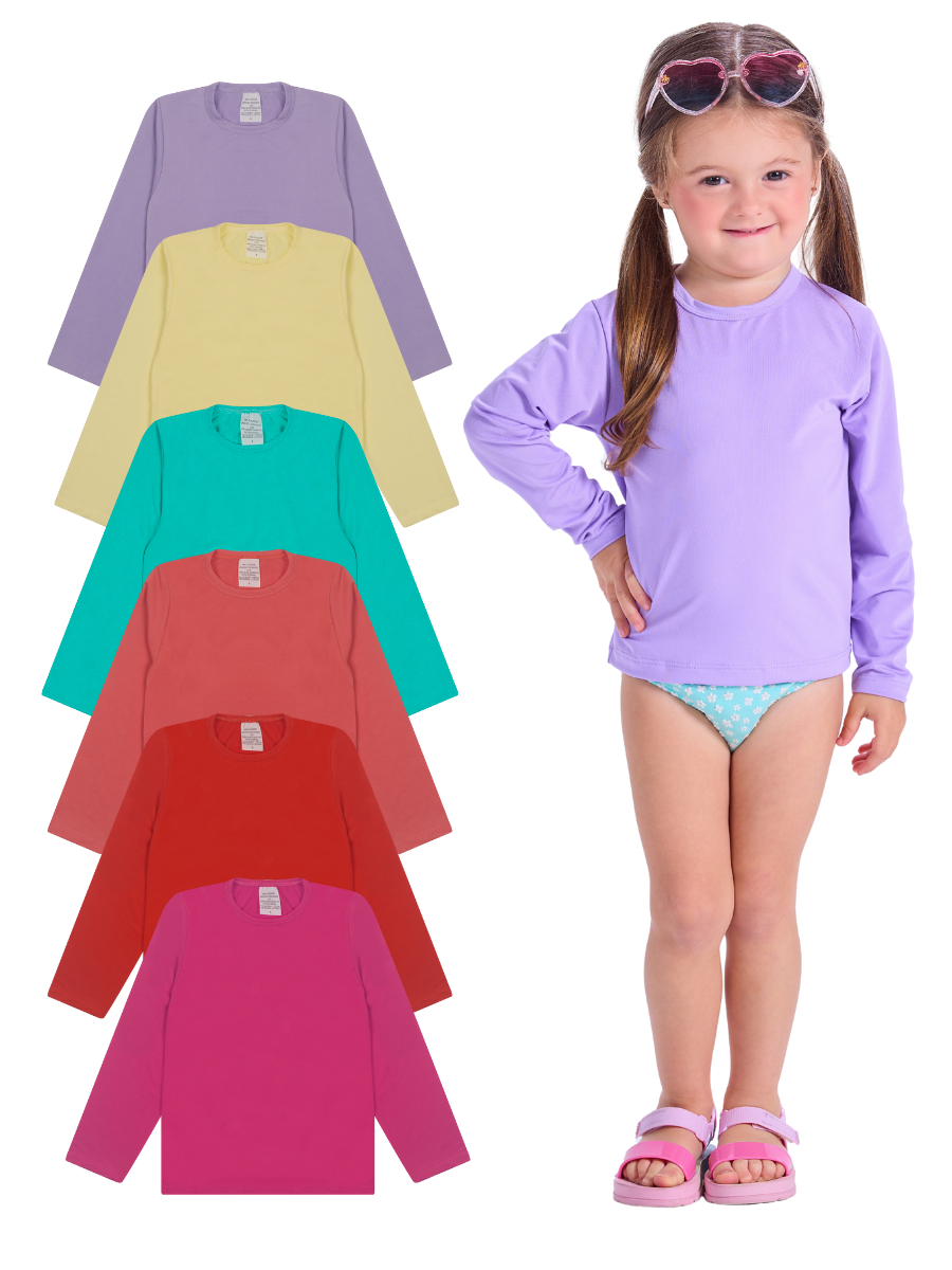 Kit 1, 2, 3 ou 4 Camiseta Bebe Menina Proteção Solar Moda Praia Feminina Infantil Manga Longa Calor Verão