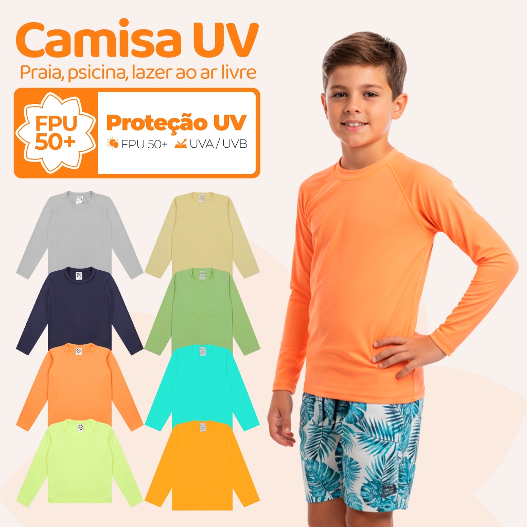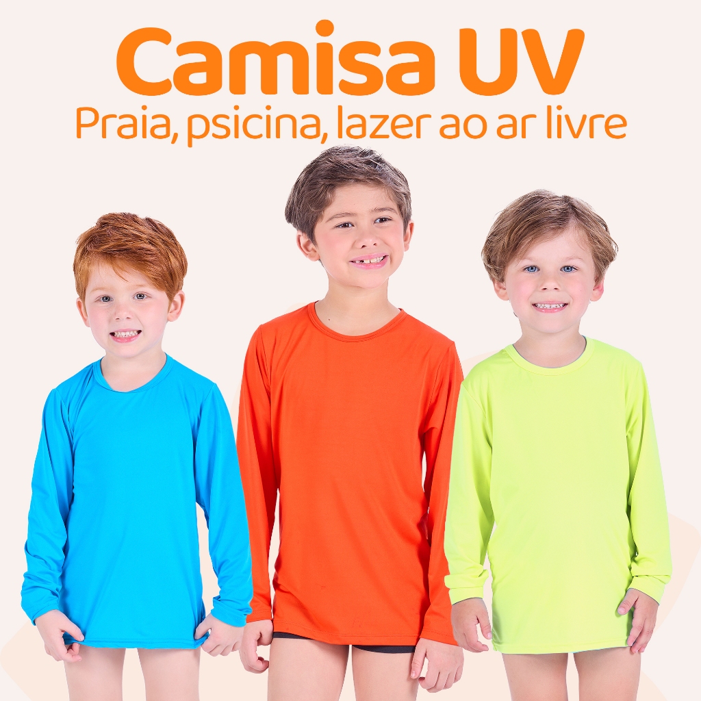 Kit 2, 3 ou 4 Camiseta Termica Infantil Menino Proteção Solar Moda Praia Masculino Verão Manga Longa