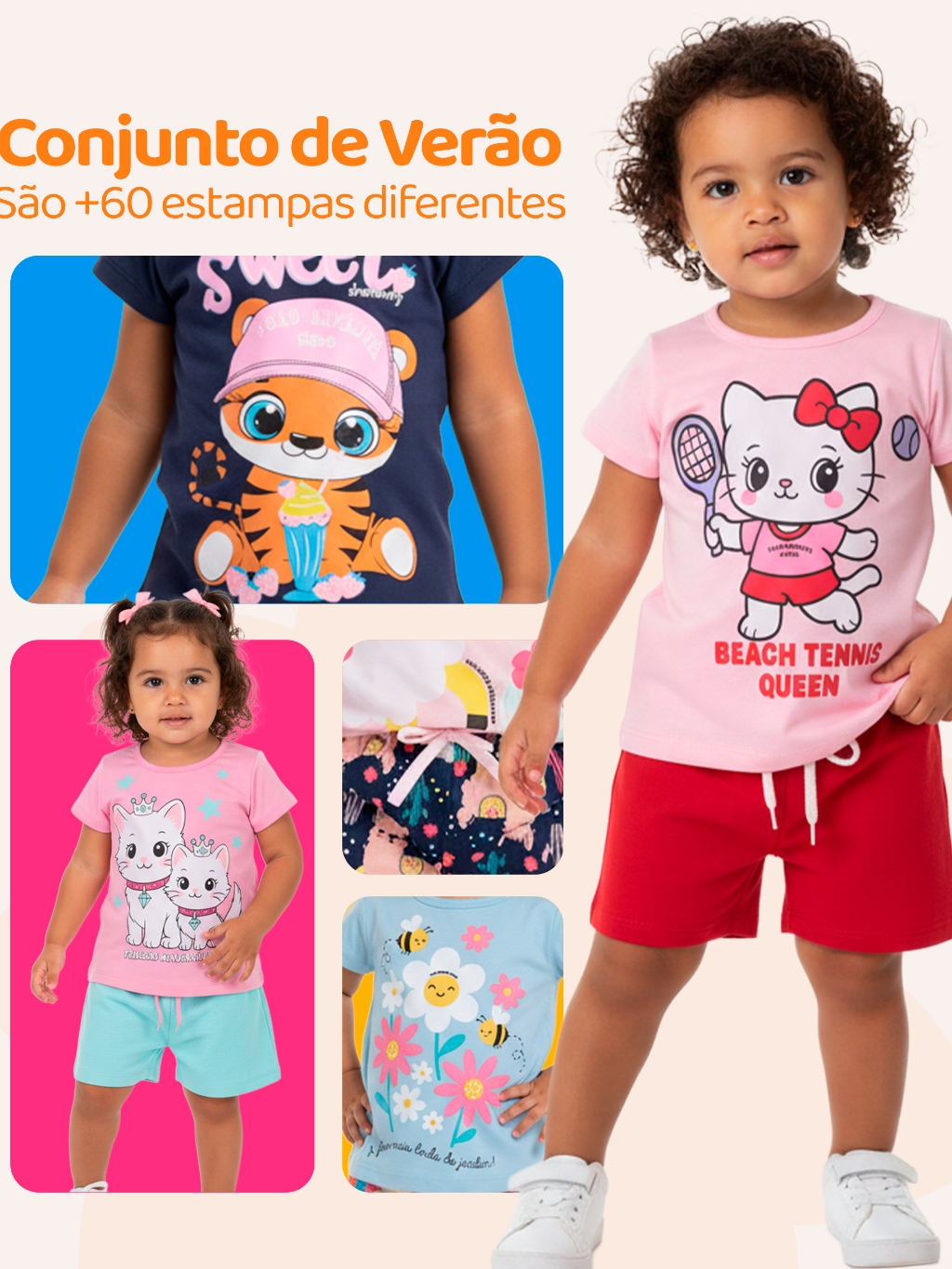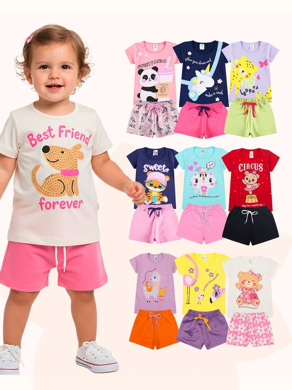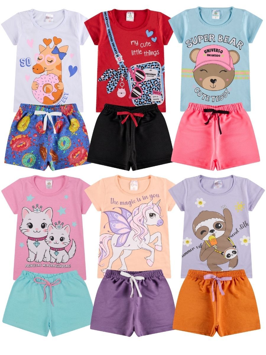 Kit Sortido 4, 10 ou 20 Peças de Roupas Bebe Menina Infantil Feminino Conjunto De Verão Em Algodão Estampas Estilosas