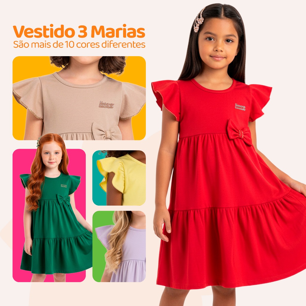 Escolha Seu Vestido 3 Marias Roupas de Menina Infantil 100% Algodão Vestido de Criança Confortável l02