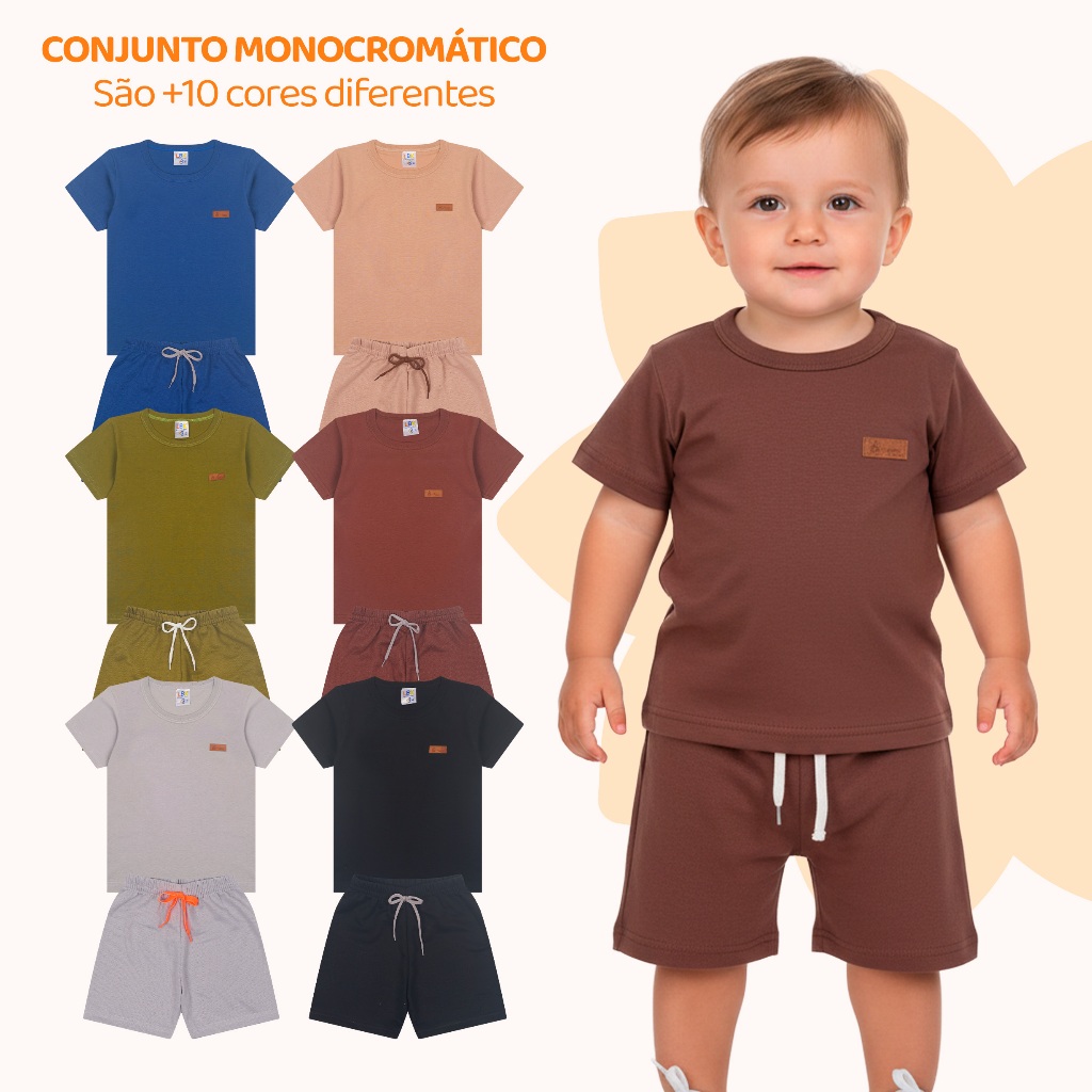 Kit 2, 6 ou 10 Peças de Roupa Conjunto Bebê Menino Masculino Minimalista Monocromático Verão Infantil Menino
