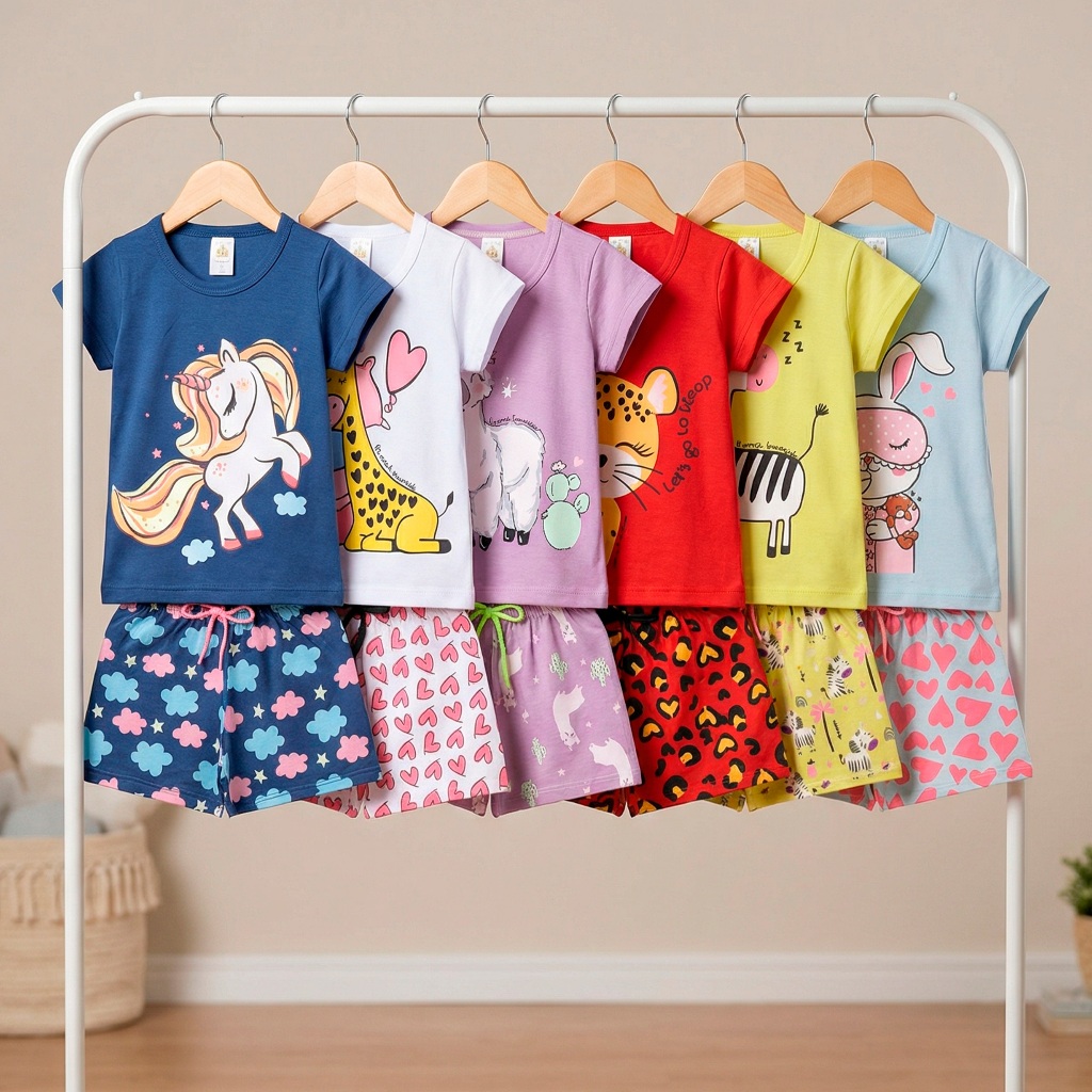 Pijama Infantil Menina Manga Curta com Estampas Fofas e Conforto Roupa Infantil Feminino Verão Calor. L05