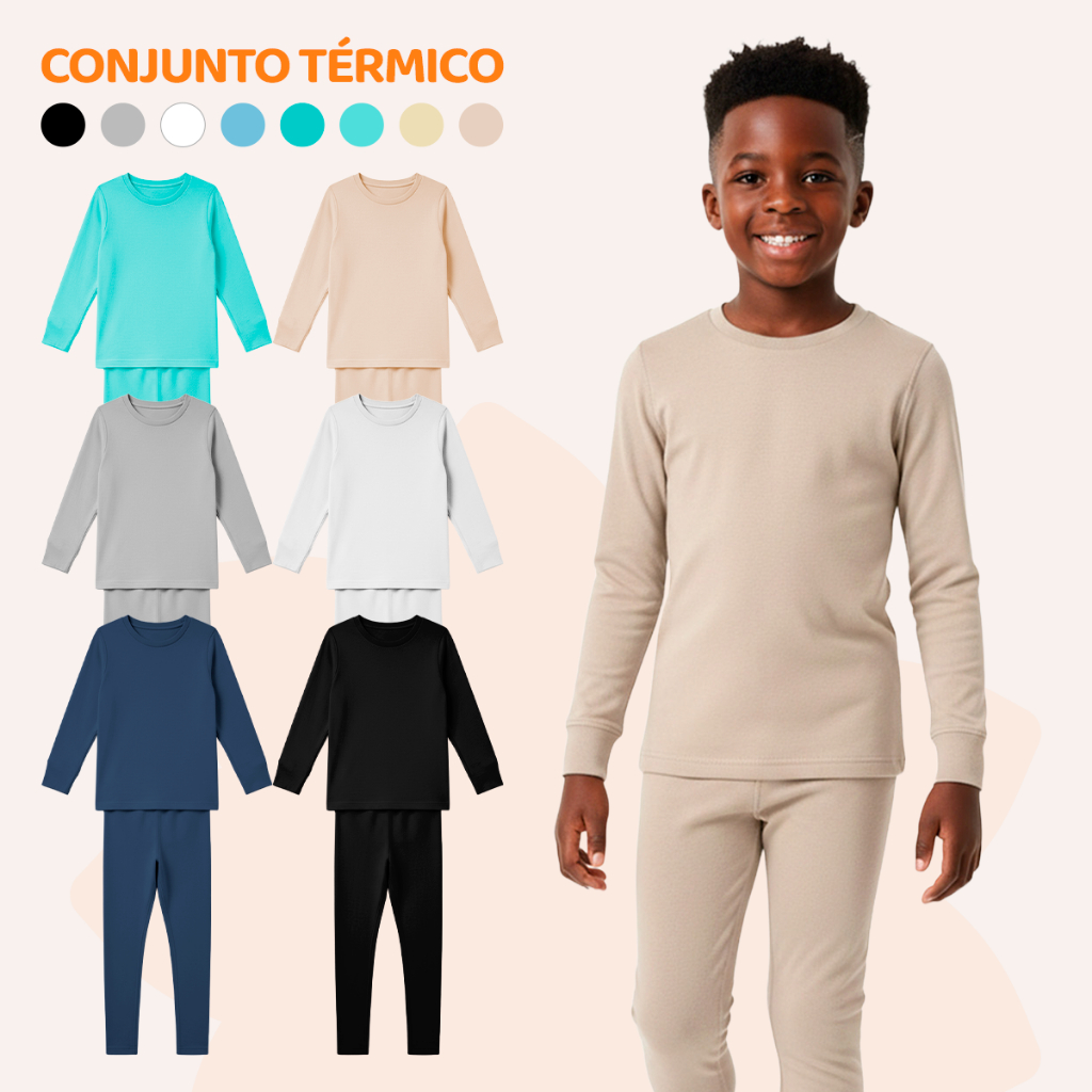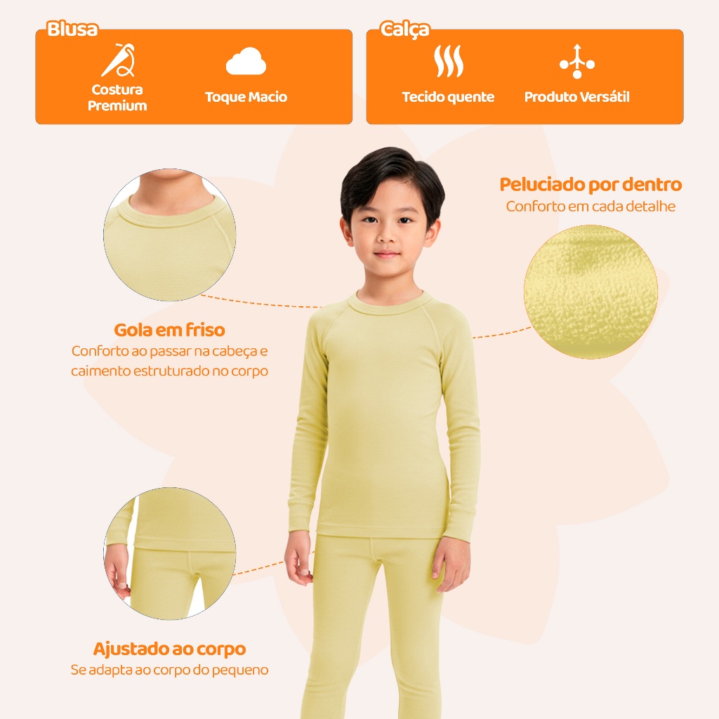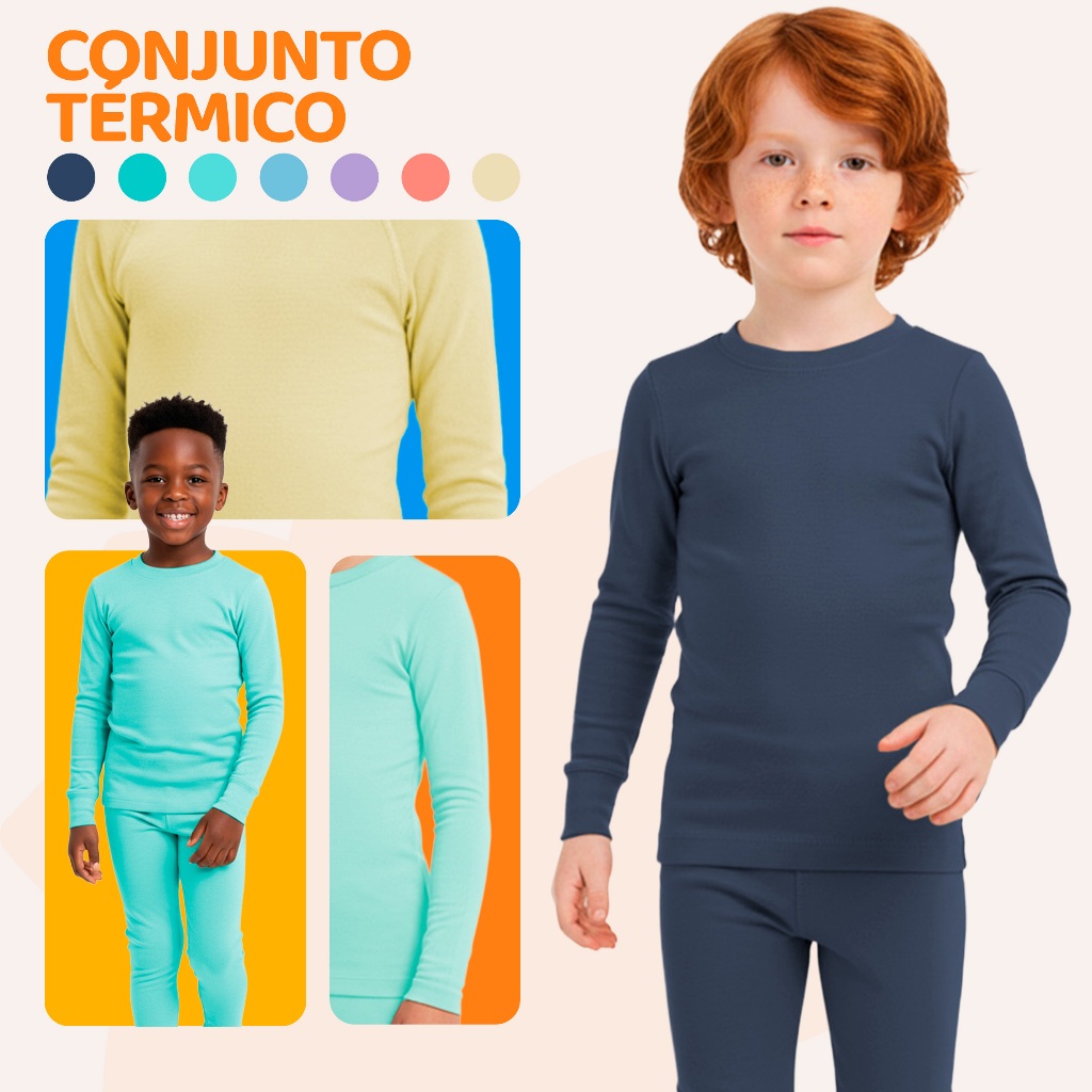 Kit 2 Conjuntos Térmicos Infantil Menino Quentinho Para Inverno Masculino De Frio Liso Blusa Térmica Manga Longa e Calça